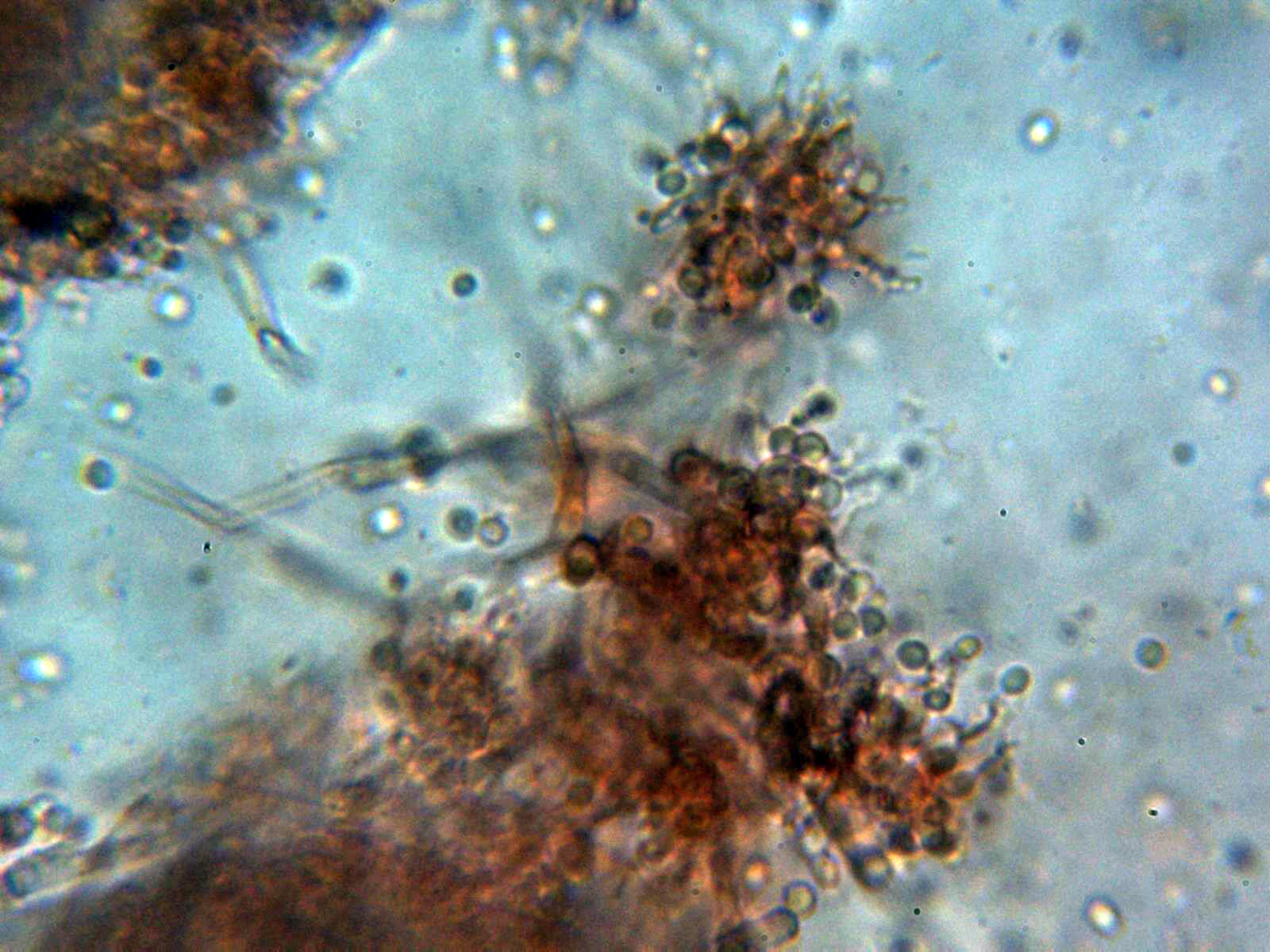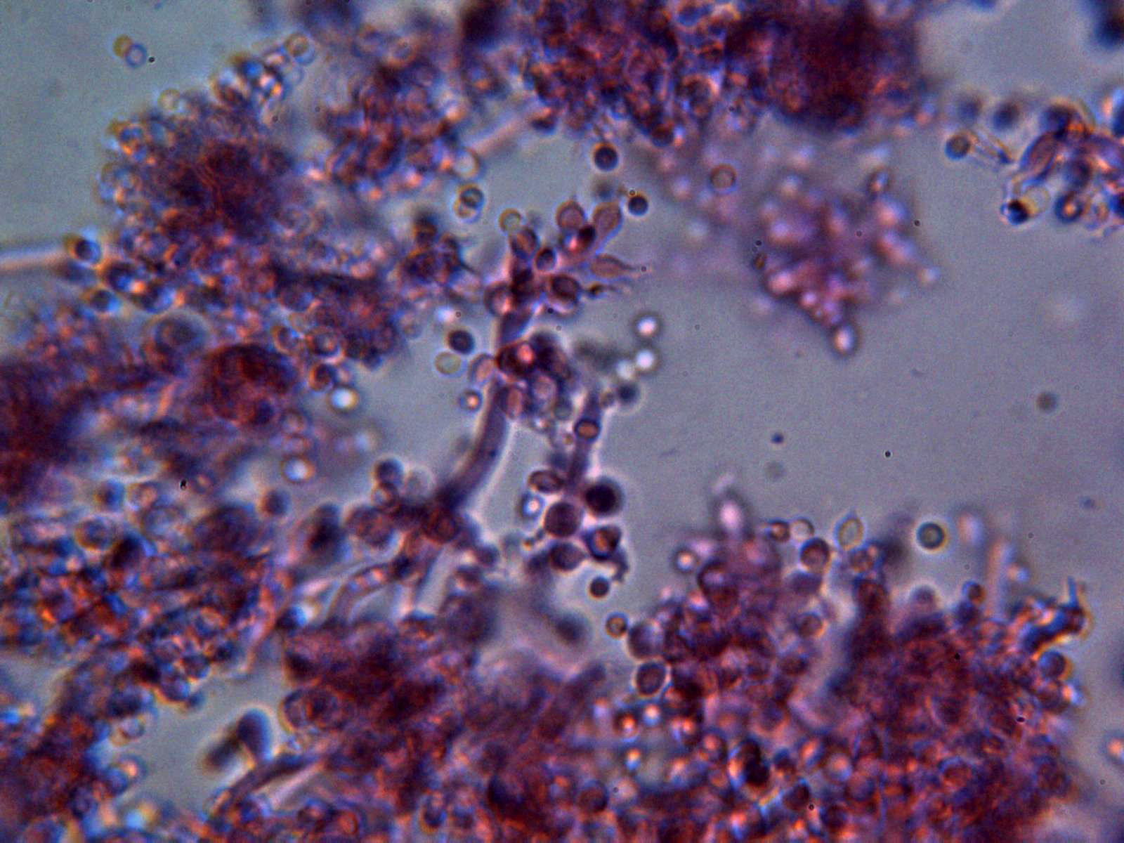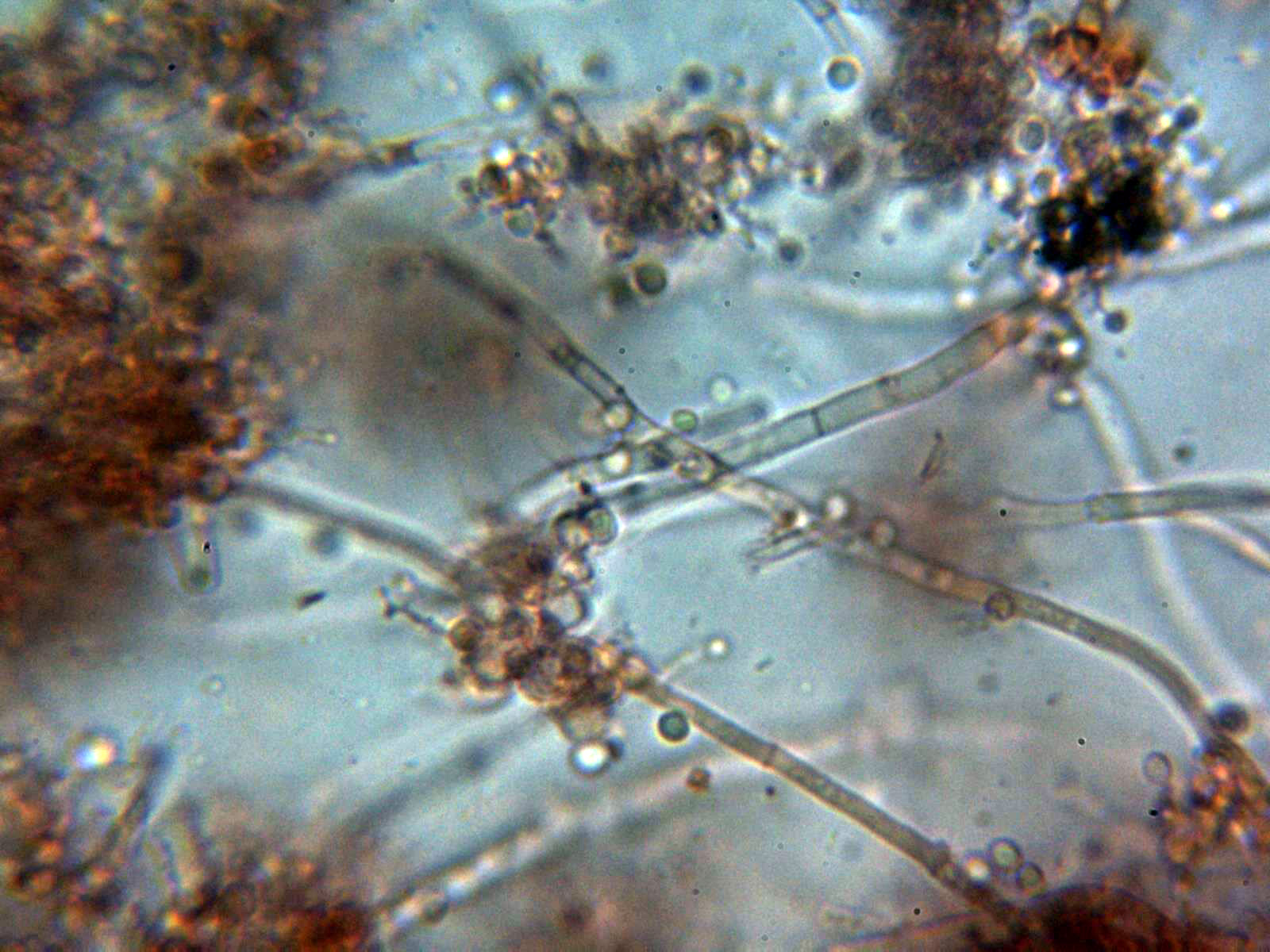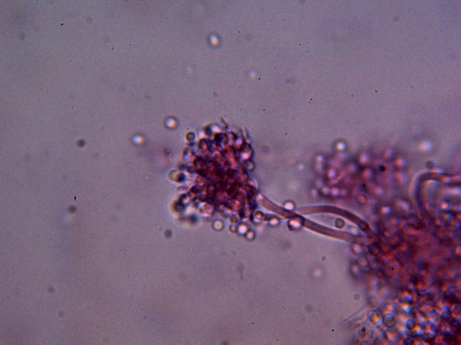 Un par de imágenes de los conidióforos en Rojo Congo muy diluido: