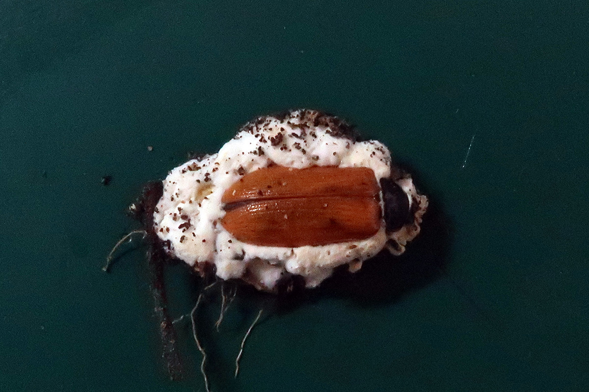 Coleóptero parasitado por el hongo.