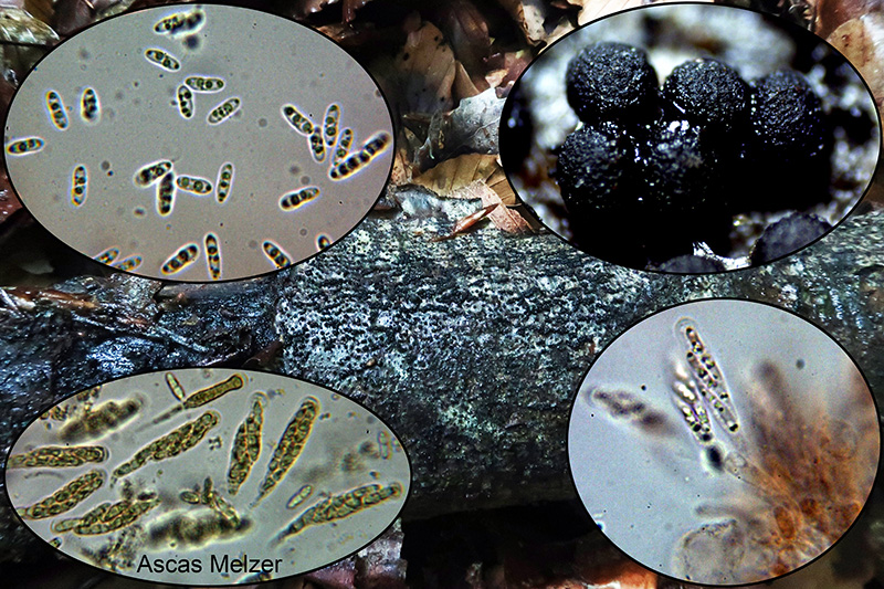 Con ascas de (27.3) 28.8 - 40.4 (47.5) × (4.7) 5 - 6 (6.4) µm. y unas esporas con unas medidas de: