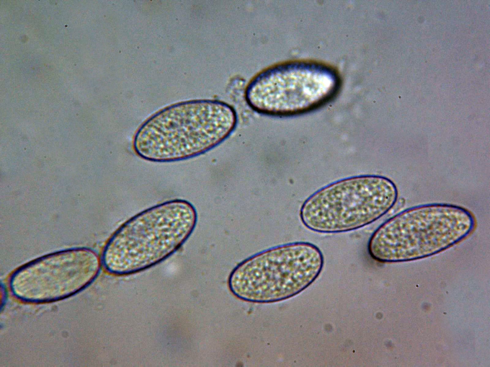 Esporas elipsoidales, con contenido multiguttular en su interior y unas medidas realizadas sobre 40 esporas de: