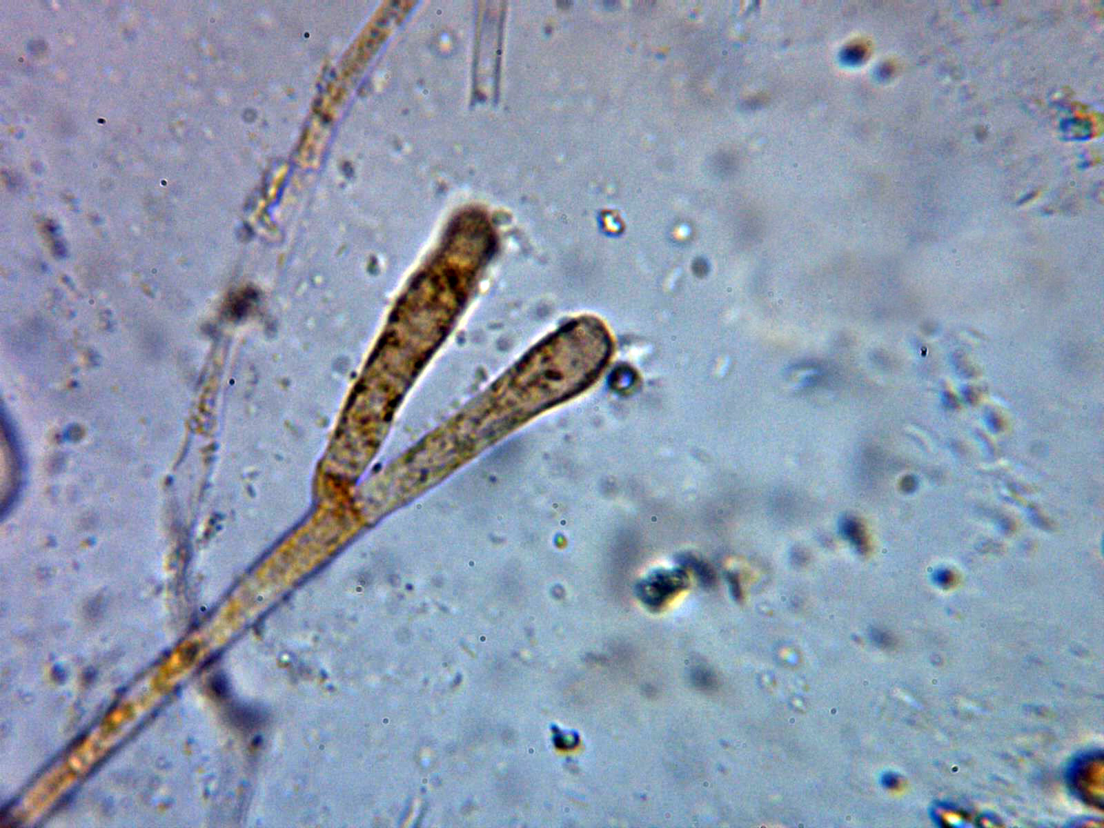 También pude observar algunas paráfisis bifurcadas como la de la imágen.