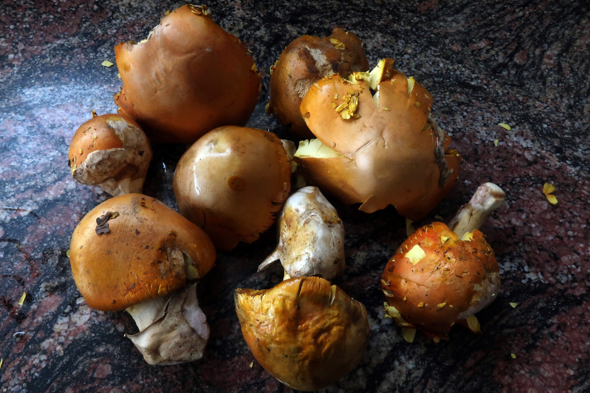Buen conocedor de que me faltaba para estudiar algun que otro Boletus y la Amanita caesarea, anteayer jueves me mandó unas muestras de estos, debo reconocer que en el caso de la Amanita caesarea se le fue un poco la mano, dejo una imágen de las muestras recibidas: