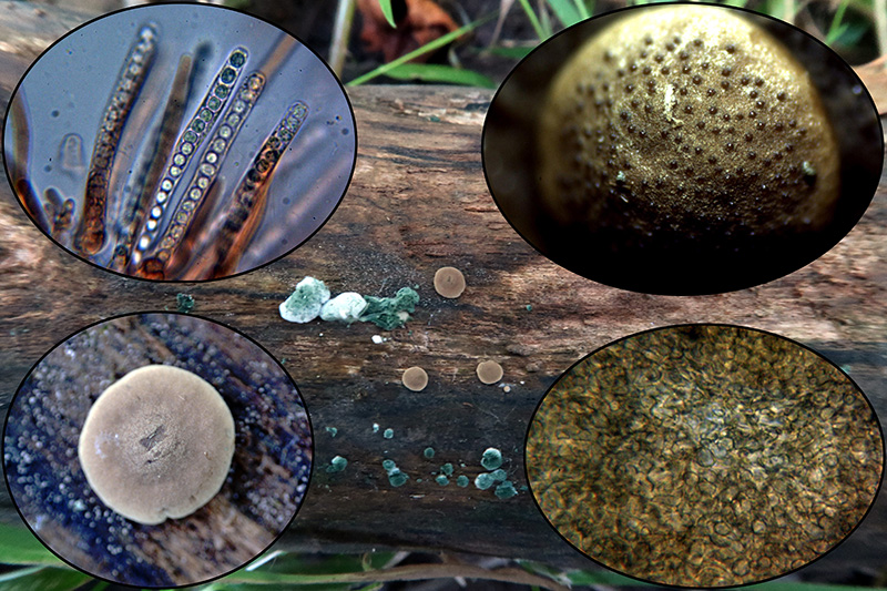 La Hypocrea rufa y al lado su anamorfo el Trichoderma viride.