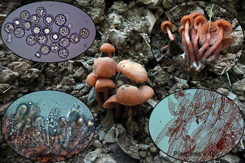 Un buen grupito de Laccarias, sigo buscando la Laccaria affinis, de nuevo me he topado con la Laccaria laccata