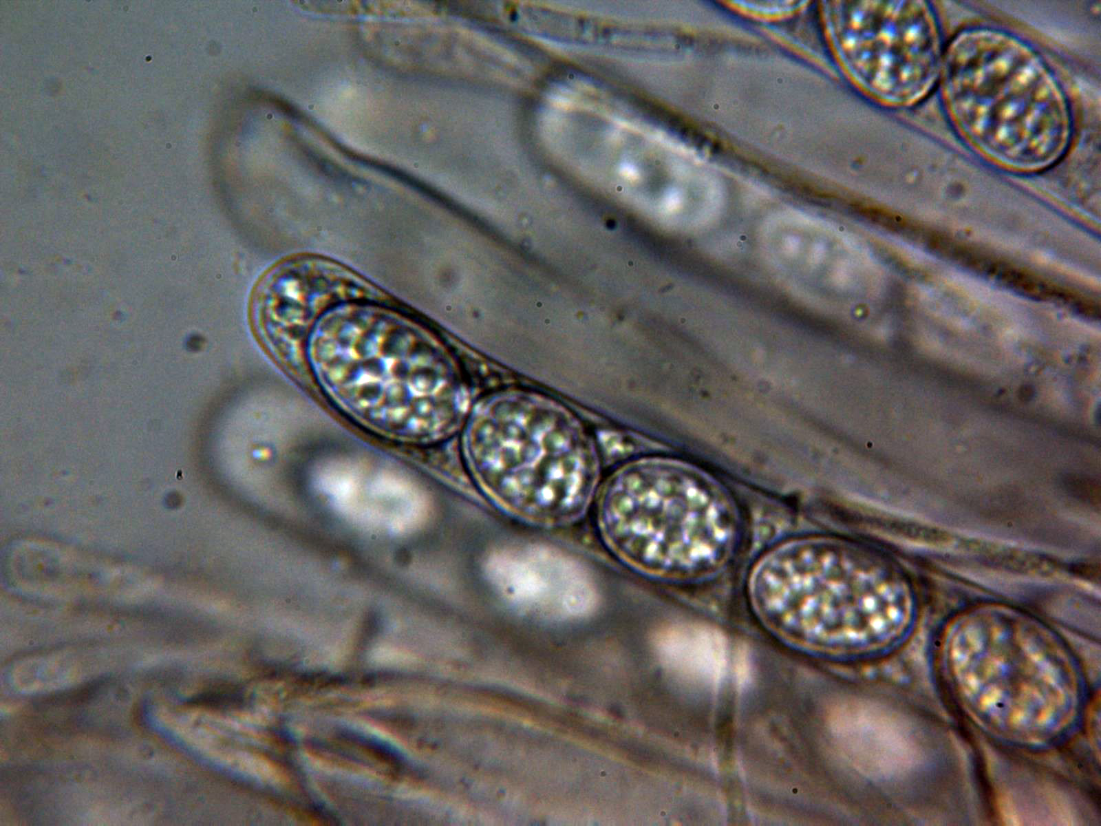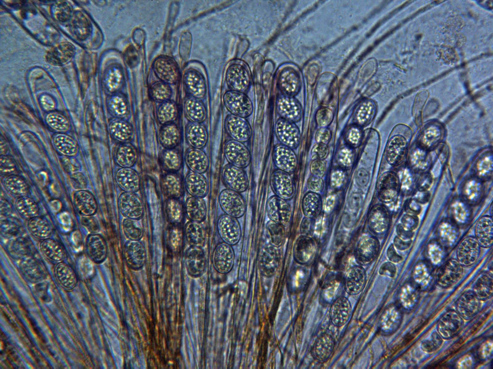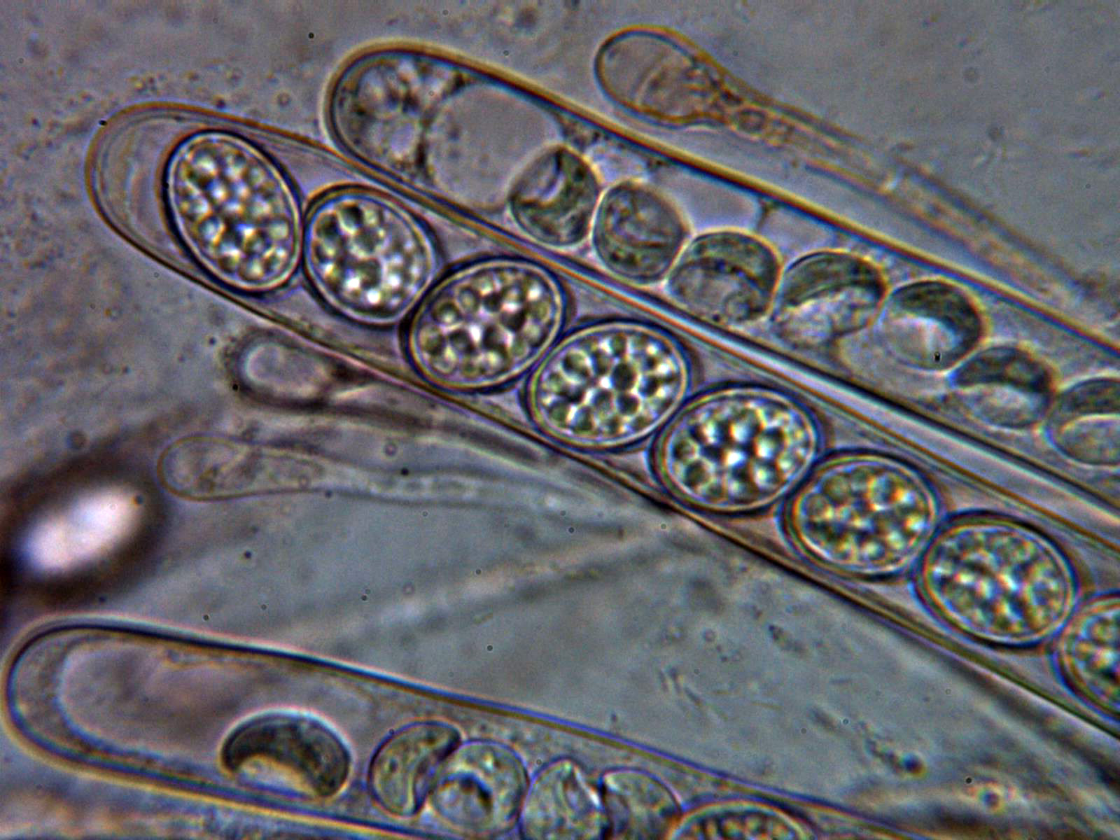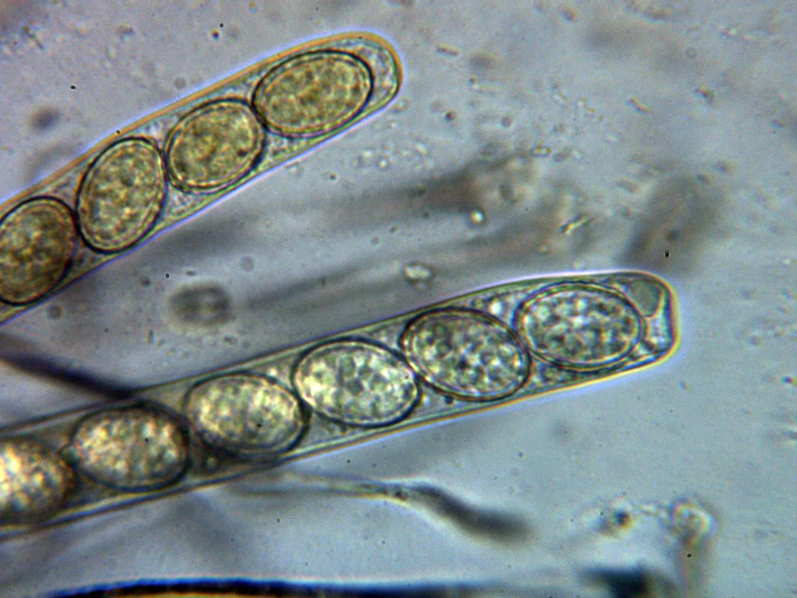 Ascas con esporas a 1000 aumentos: