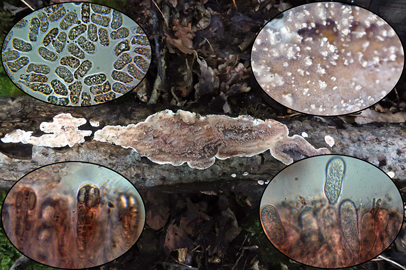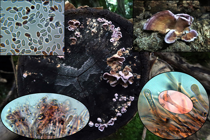Uno que si bien creía tener, hasta ahora no había podido contrastar con el micro, el Chondrostereum purpureum. Aunque se mostró poco agradecida al micro, al parecer y según "Les Champignons de Suisse", la presencia de las hifas vesiculosas en el subhimenio, son suficientes para determinar con garantías la especie.