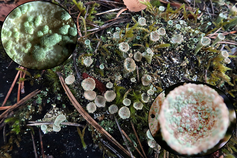 También un líquen, una Cladonia, con sombrero granuloso, no pulverulento, con gránulos de entre 0,21 a 0,36 mm., muy probablemente Cladonia pyxidata