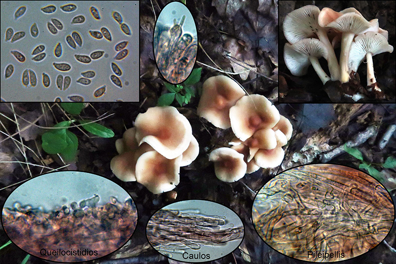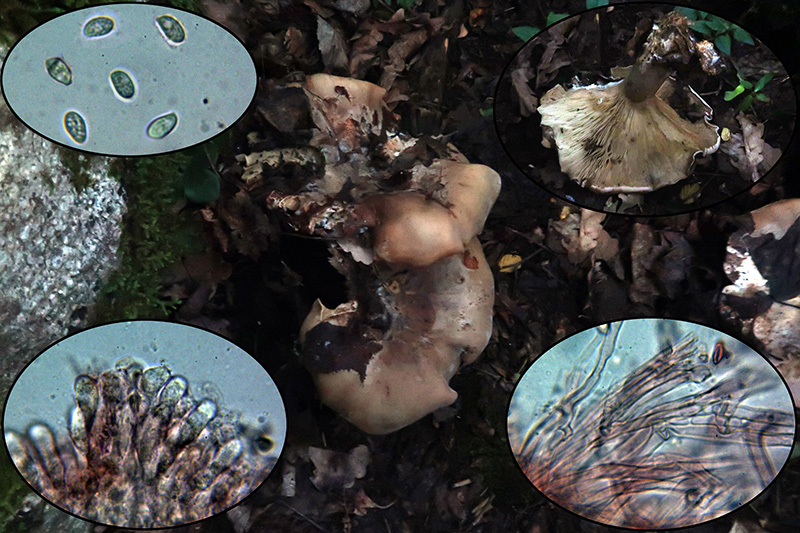 Para empezar otro complicado Gymnopus, también de la Sección Impudicae, este con láminas mas densas y apretadas, con olor a col podrida. El mas parecido que he encontrado sería el Gymnopus hariolorum, aunque me surgen dudas por las medidas de los caulocistidios, en mi caso de 62.14 - 84.7 × 4.4 - 5.8 µm. por encima de las 70 µm. indicadas en las claves, así que de momento lo dejo como Gymnopus cf. hariolorum
