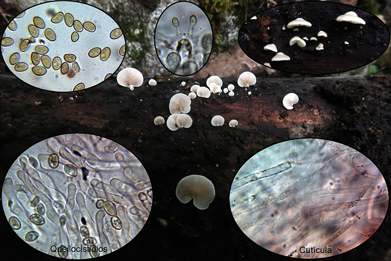Un Crepidotus, con cutícula gelificada y sin fíbulas, el Crepidotus mollis