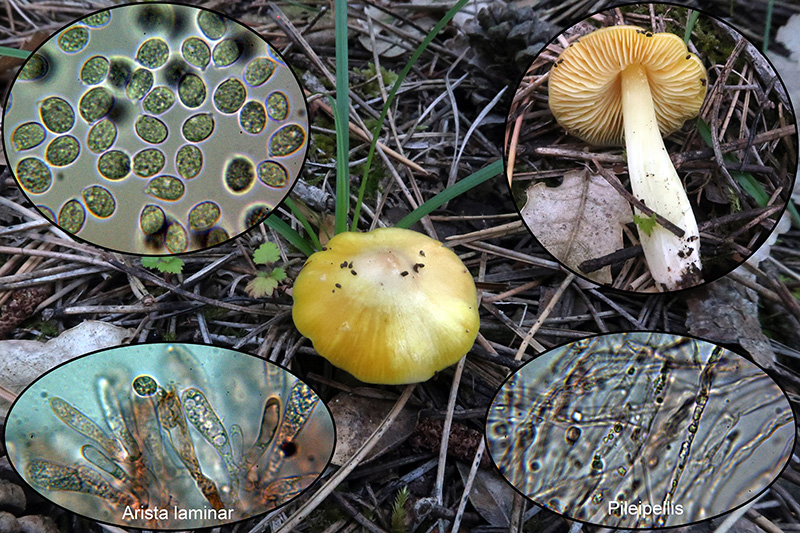 Un Hygrocybe con sombrero cónico, para muchos una variedad de la Hygrocybe acutoconica, según Mycobank actualmente Hygrocybe konradii. No voy a poner en duda que probablemente y basado en datos moleculares, sean prácticamente idénticas, pero a mi modo de ver ambas especies presentan caracteres microscópicos muy distintos, para la Hygrocybe acutoconica, basidios bispóricos y según las claves de Funga Nordica con esporas de (8-)10-12.5(-15) x 4.5-6.5(-8) μm, con un cociente Q de 1.5-2.5, y para la Hygrocybe konradii, basidios tetrasporicos y con esporas con unas medidas de (8-)9.5-12(-15) x 6.5-10.5(-12.5) μm, Q = 1-1.7.