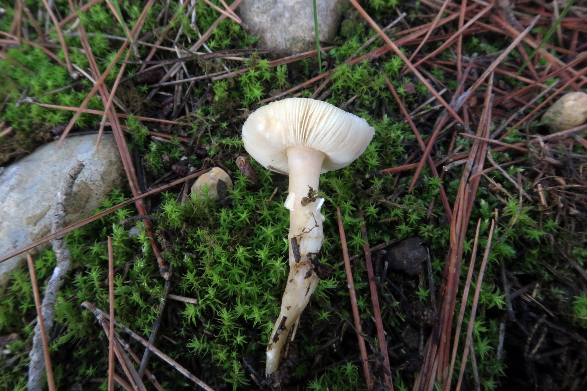 Muestra recogida el 24 de Noviembre del año pasado, en soto fluvial, a 190 msnm., brotando sobre briófitos y en una zona en la que solo había pinos.