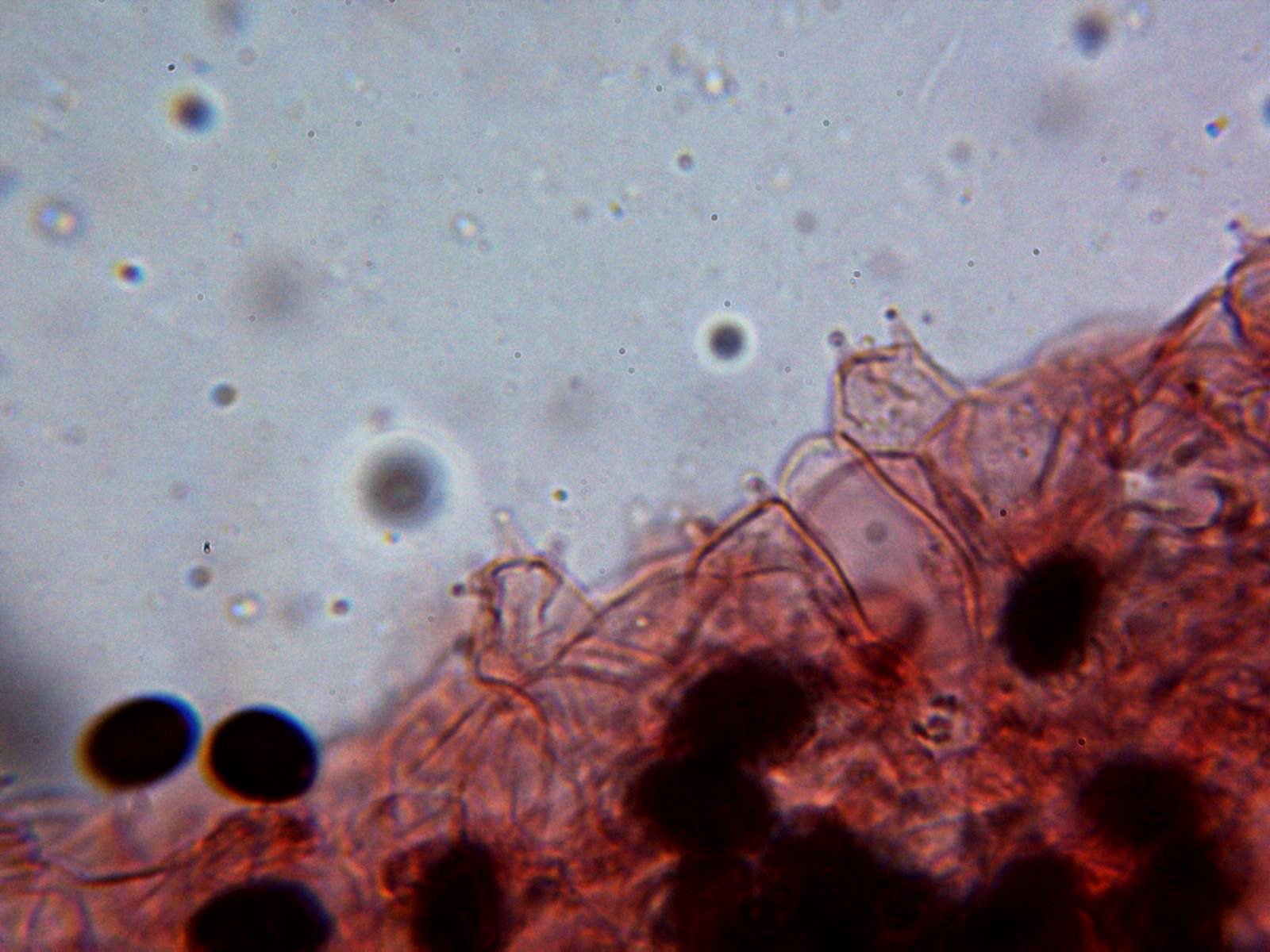 Si bien las medidas esporales encajan perfectamente con las medidas indicadas en las Claves de Andreas Melzer (8-12 X 5-7,5 µm. ), si las comparamos con las medidas indicadas en las Claves de Funga Nordica, se quedan un poco cortas en anchura (9,5-11-5 X 6-7,5 µm.), atendiendo a las medidas de los pileocistidios de mi estudio de 62.3 - 74 × 9.1 - 13.5 µm. si que parecen encajar con las indicadas en las claves de A. Melzer (50-120 x 8-15 µm.) y de manera ya un poco mas forzada con las indicadas en las Claves de Funga Nordica (50-100 x 12-22 µm.).