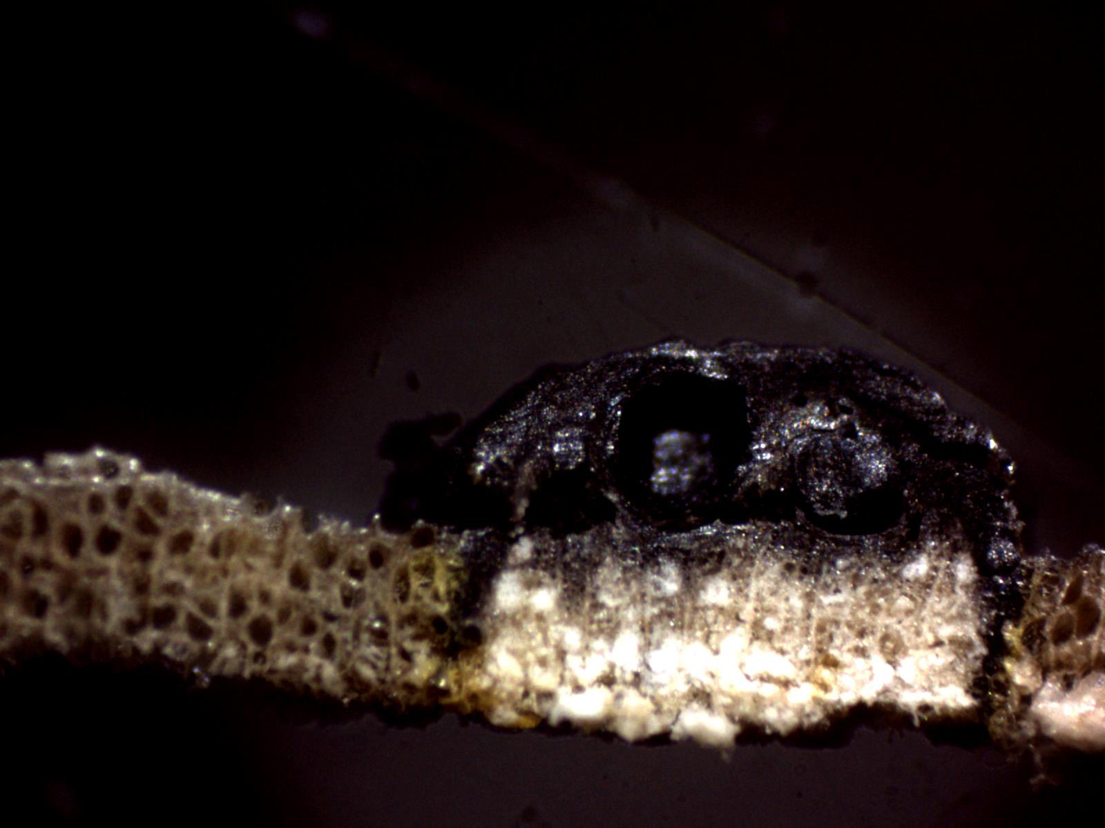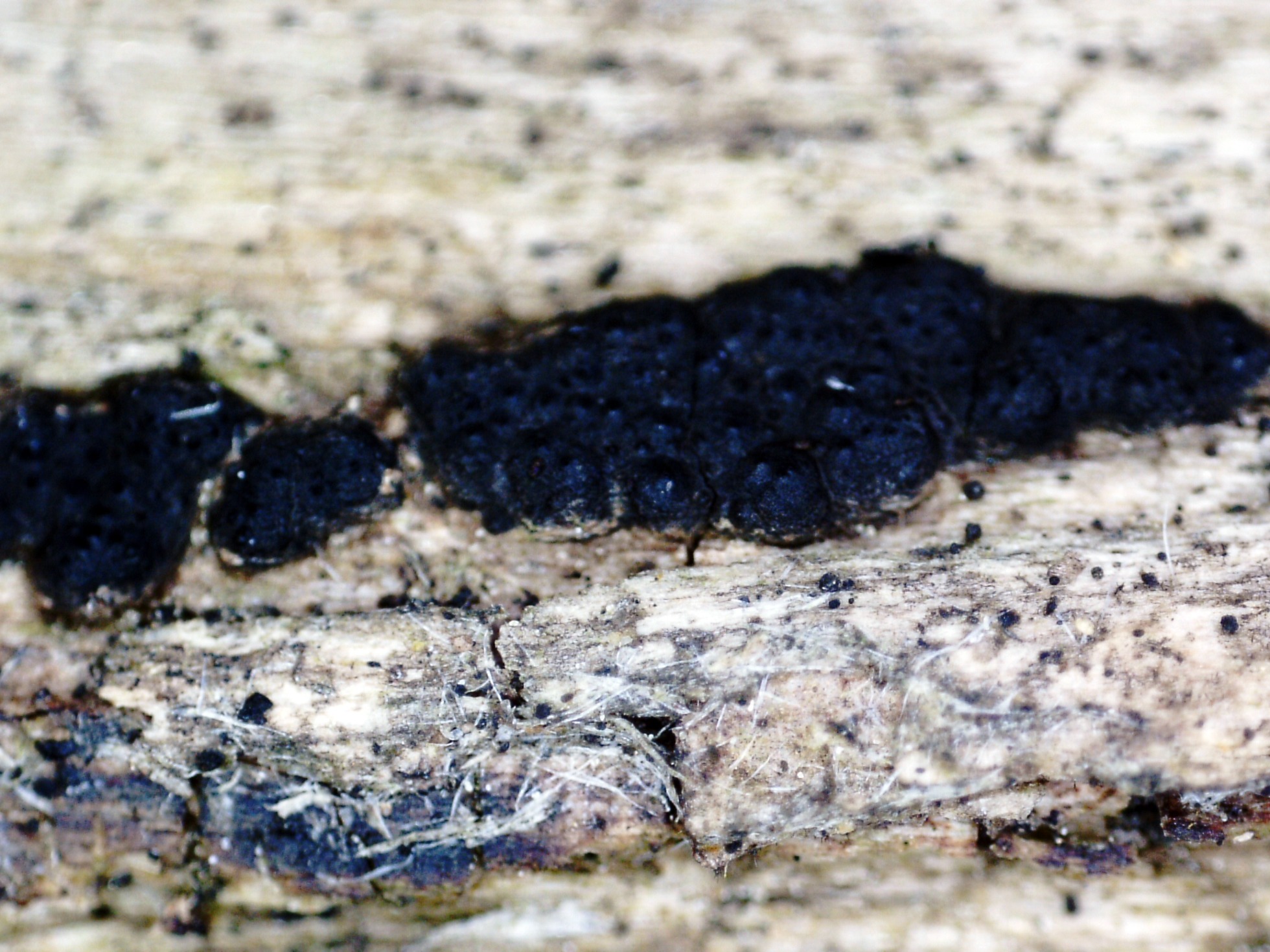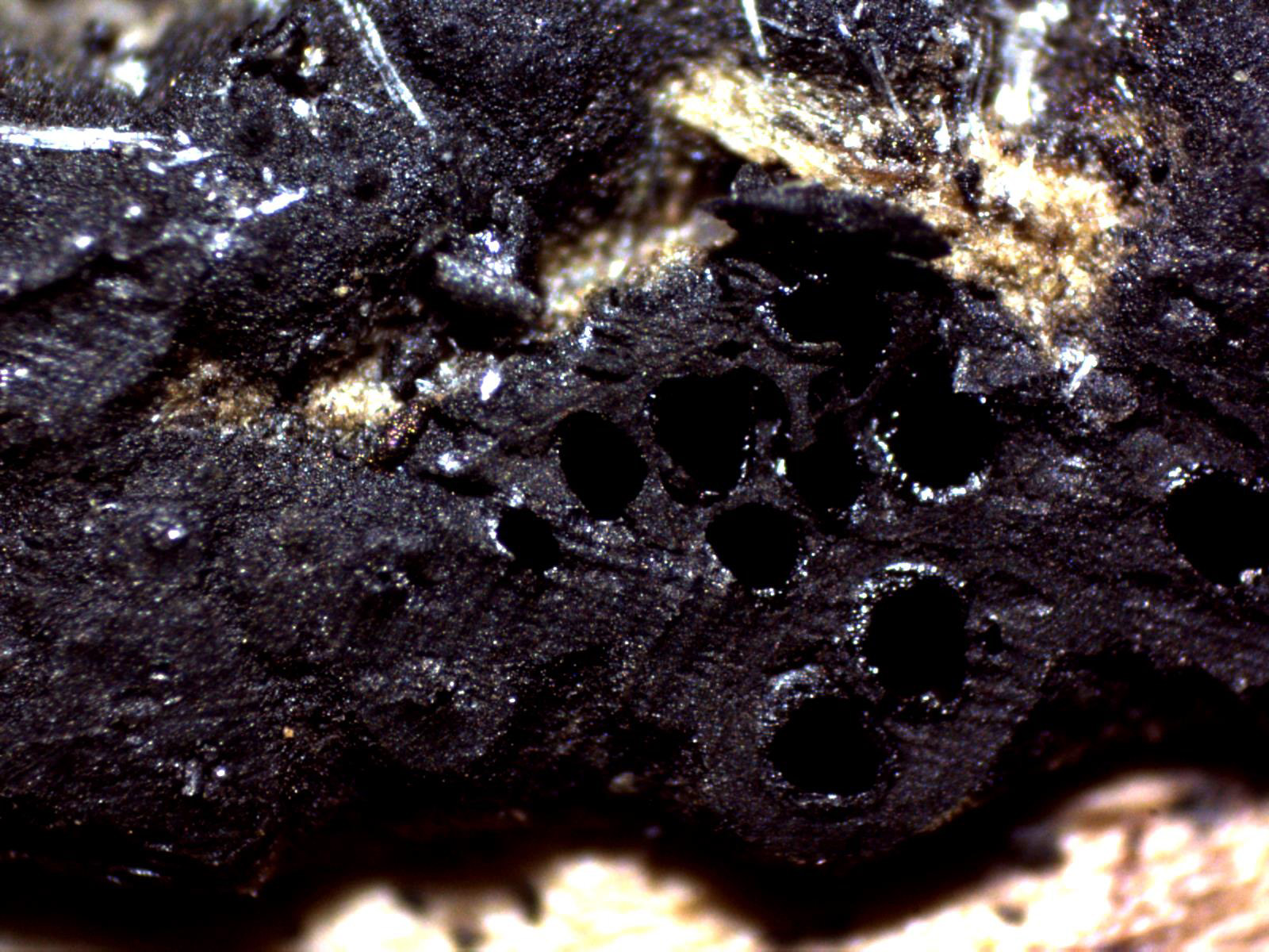 Un corte superficial del estroma, con peritecios de pequeño tamaño de entre 0,34 a 0,42 mm., según las claves de entre 0,4 a 0,5 mm.