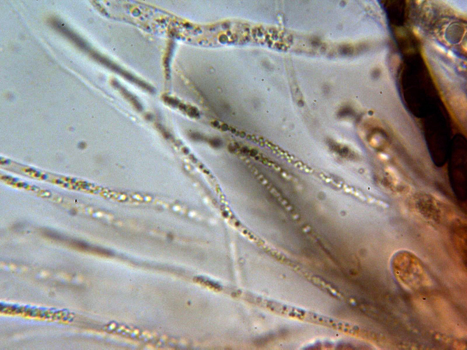 Por contra si reacciona el aparato apical tanto al Lugol como al IKI, una imágen del aparato apical en IKI: