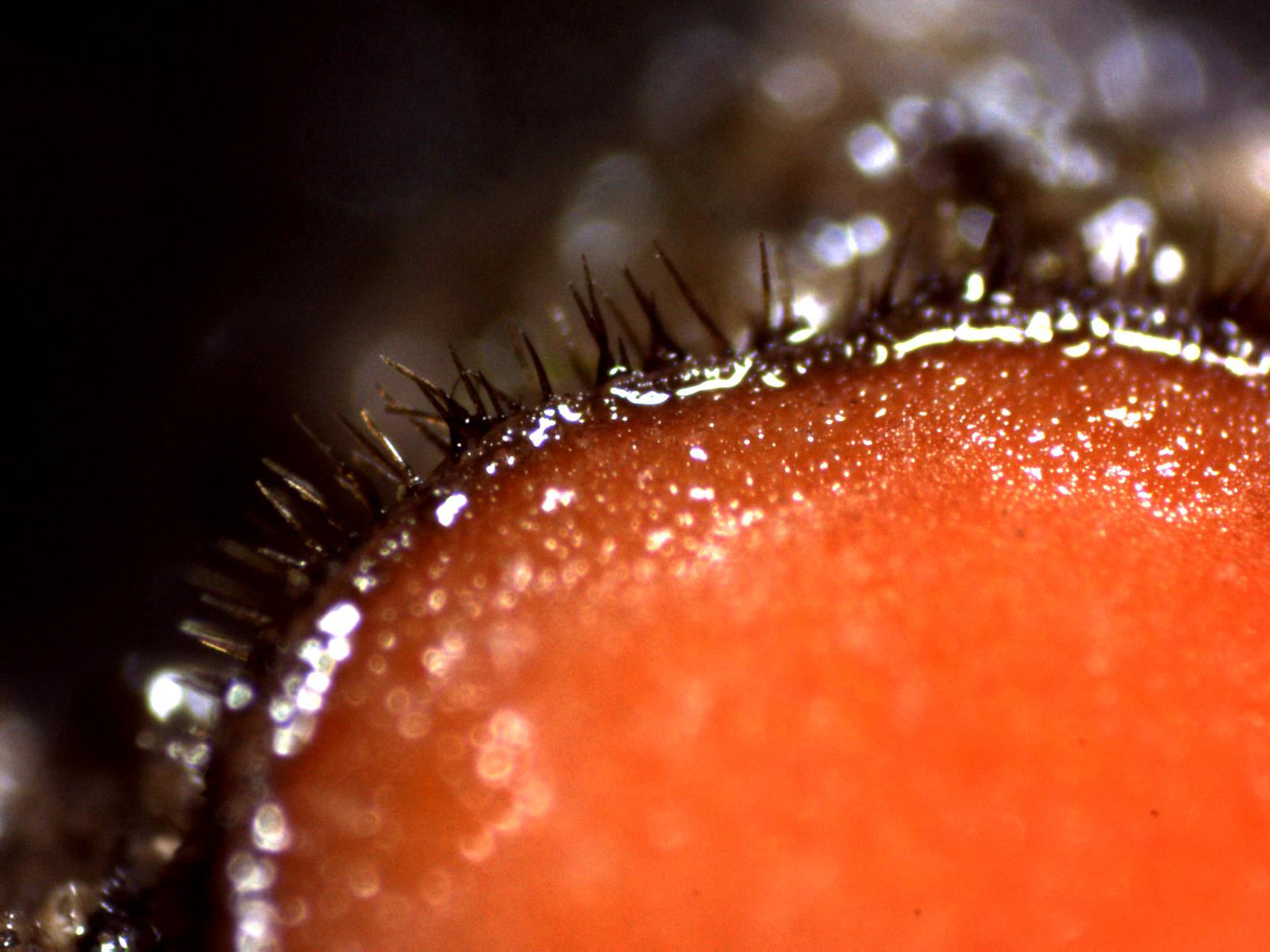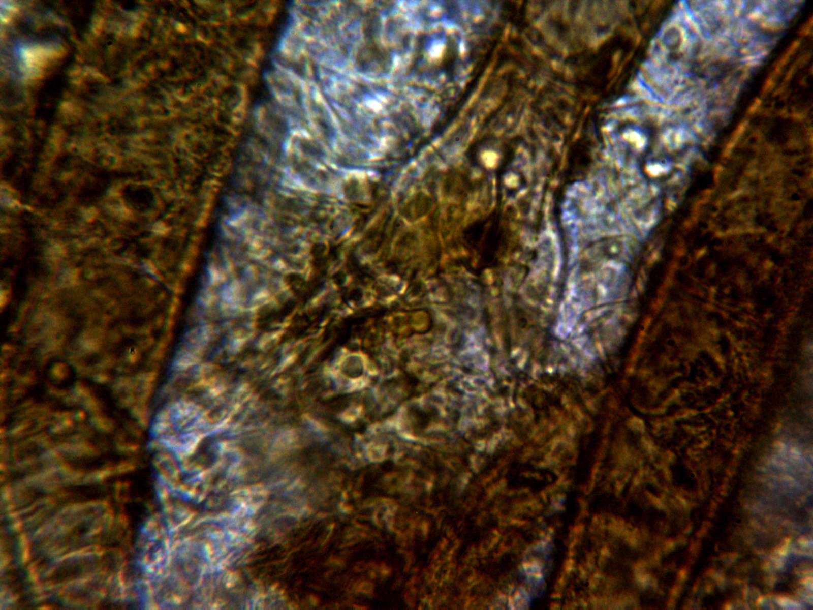 Detalle del pigmento intracelular de las paráfisis que es el causante de su color anaranjado: