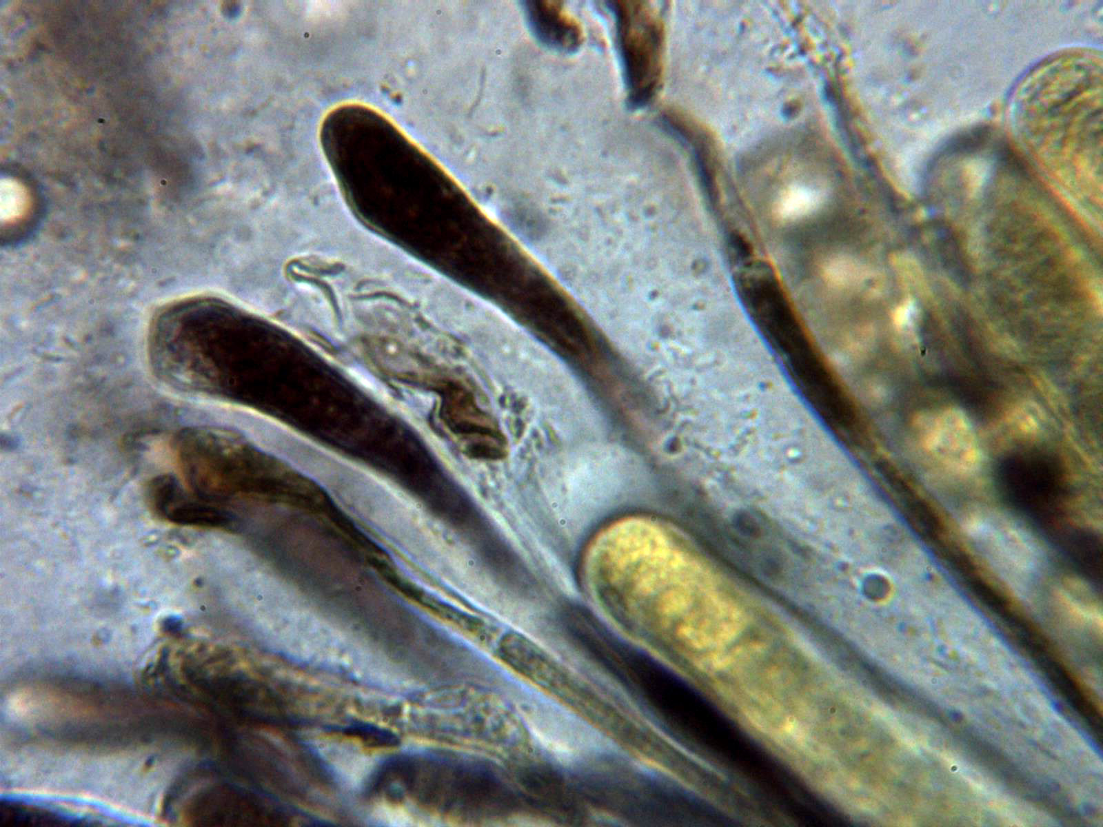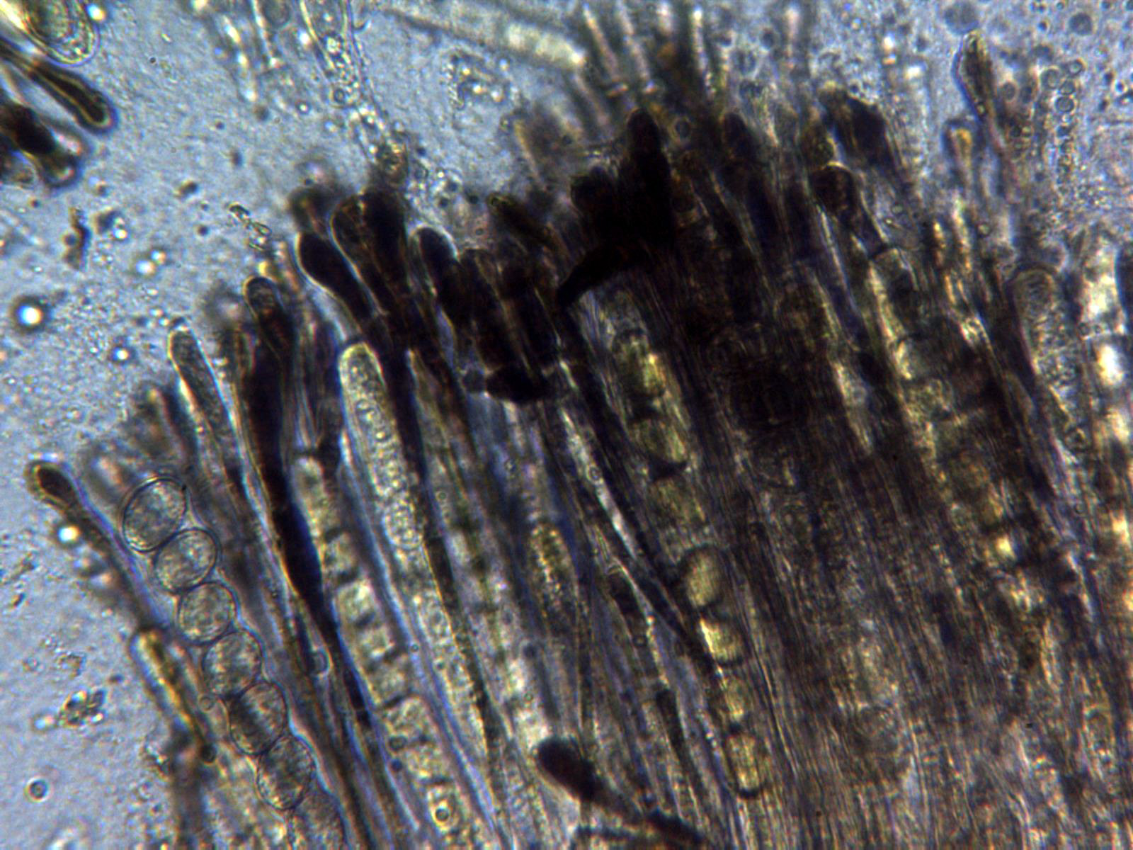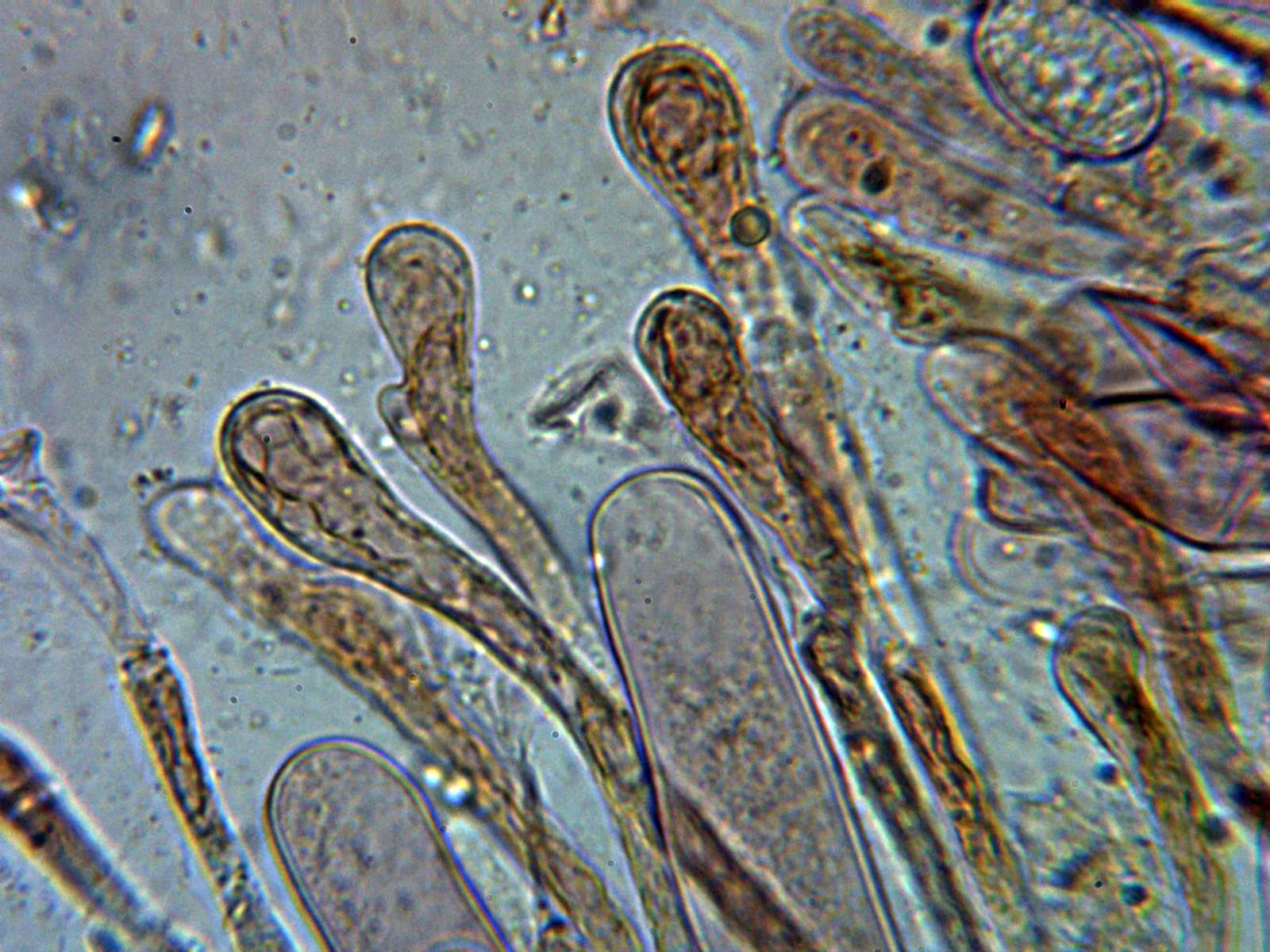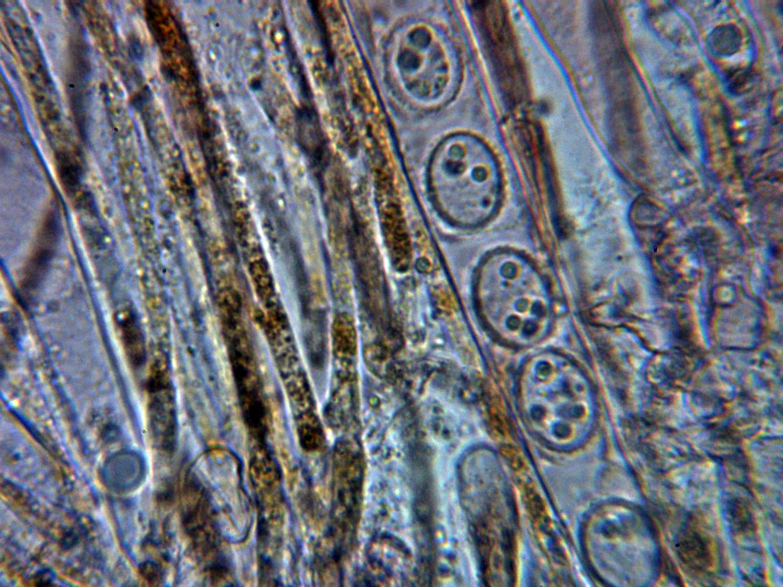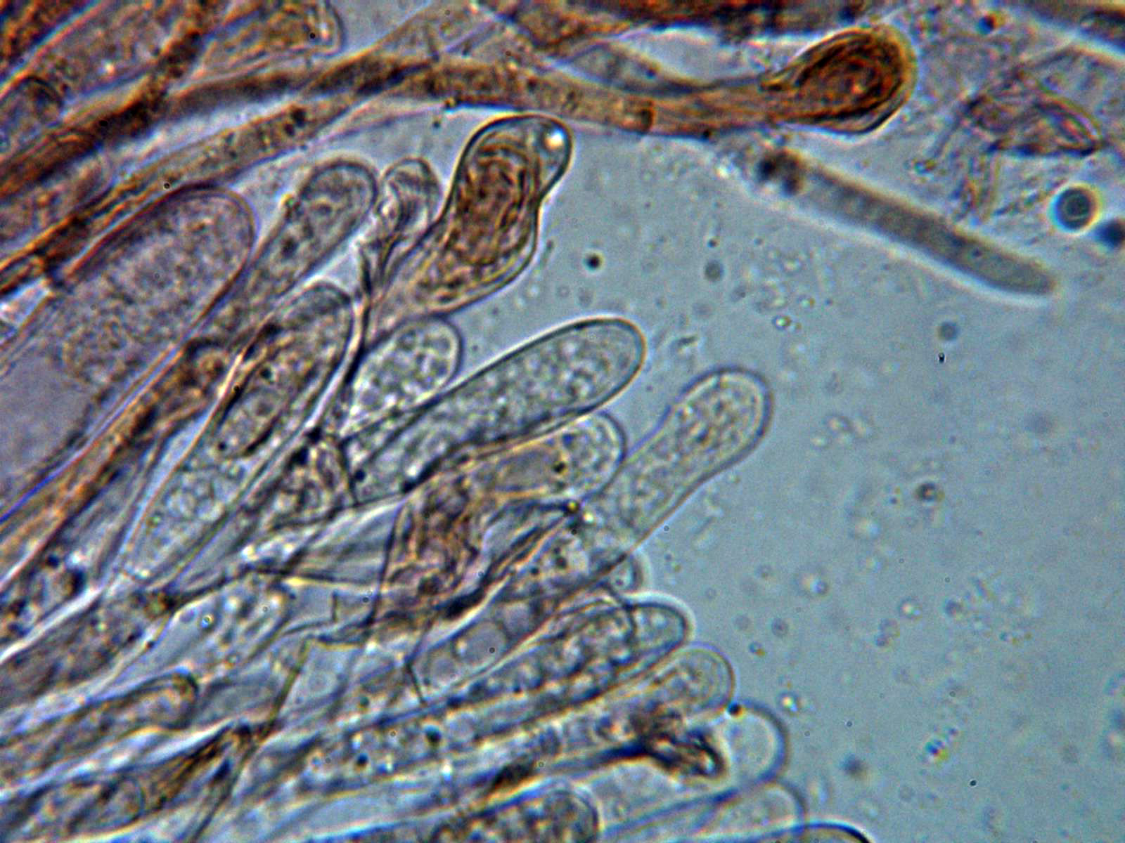Paráfisis filiformes, con pigmento amarillento y ensanchadas considerablemente en el ápice.