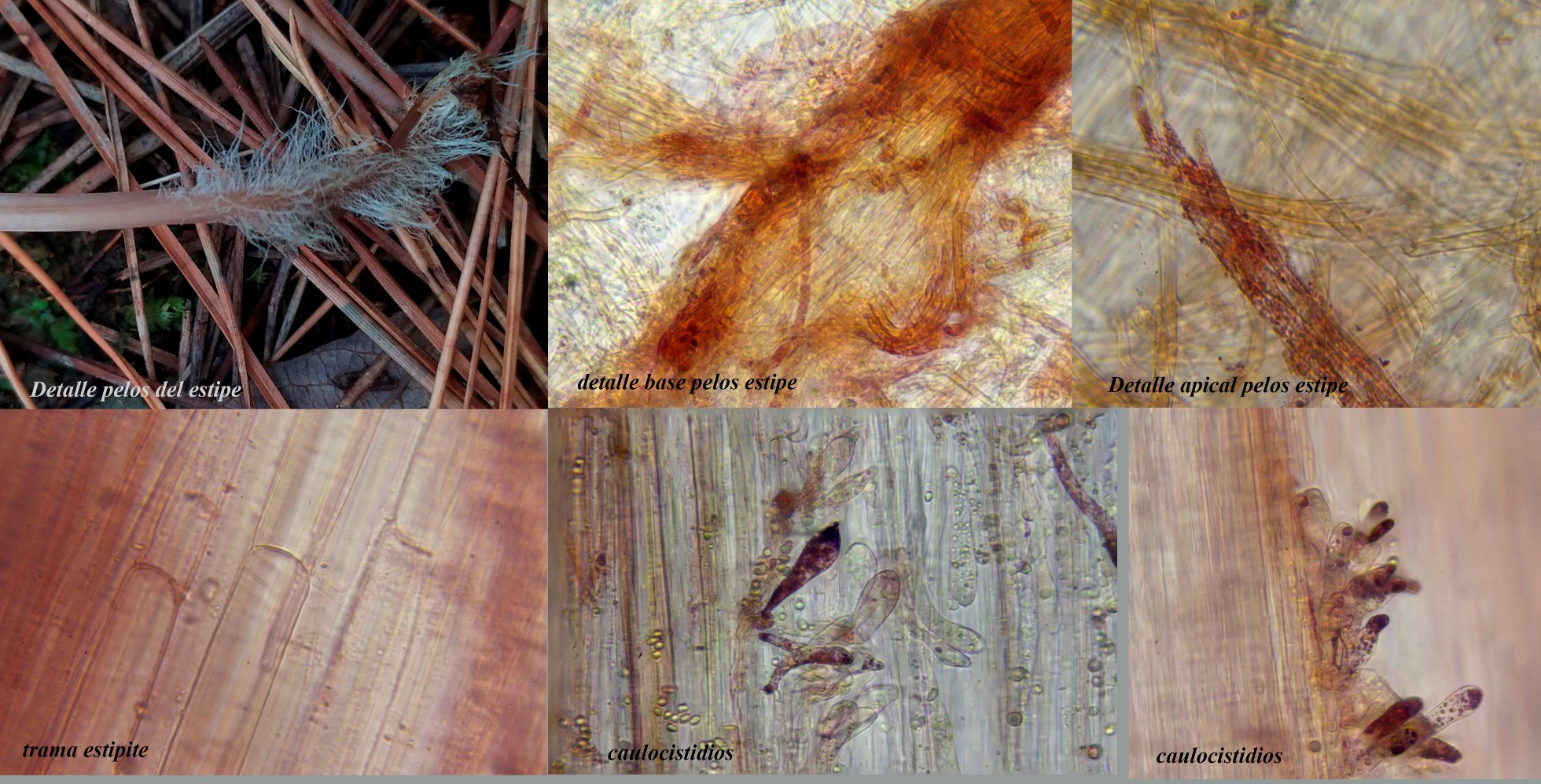 , has hecho un excelente trabajo, no soy ni mucho menos ningun experto en Mycenas, aquí de experto tenemos a Koldobika, a ver si nos lee el tema. De todos modos te voy a dar mi opinión, aunque el tamaño esporal que nos indicas no termina de cuadrarme ya que según Funga Nordica deberían medir 9-11 x 5-6 μm, y según las Claves de "Las Mycenas del Norte der Europa" de 8-11,5 x 4,5-6 µm. (estas últimas encajan un poco mejor) ya solo por el hábitat (bajo pinos), estos queilocistidios con contenido granuloso de color rojizo y además por su morfología, los Pleurocistidios que pueden o no presentar asimismo contenido granuloso, la base del pie con estas abundantes fibrillas blancas, me inclino por la Mycena capillaripes