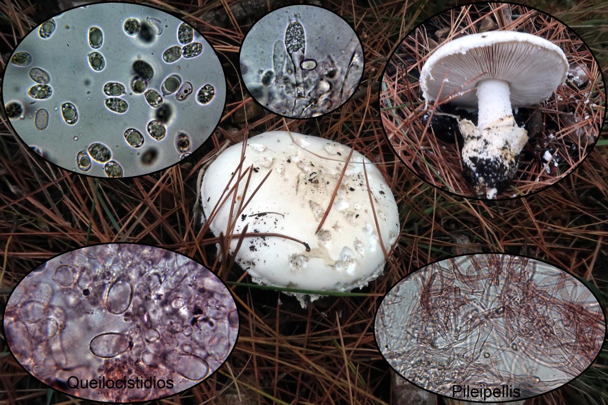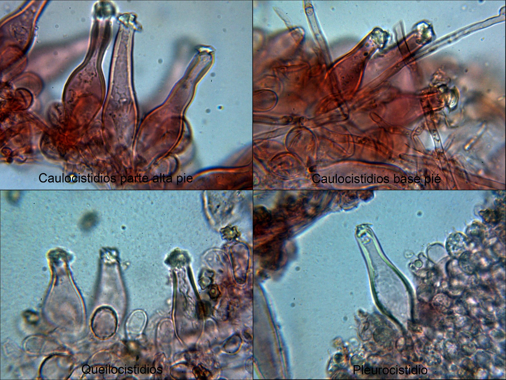 Y una imágen de sus abundantes cistidios presentes en toda la superficie del pie, así como en la arista y cara laminares:
