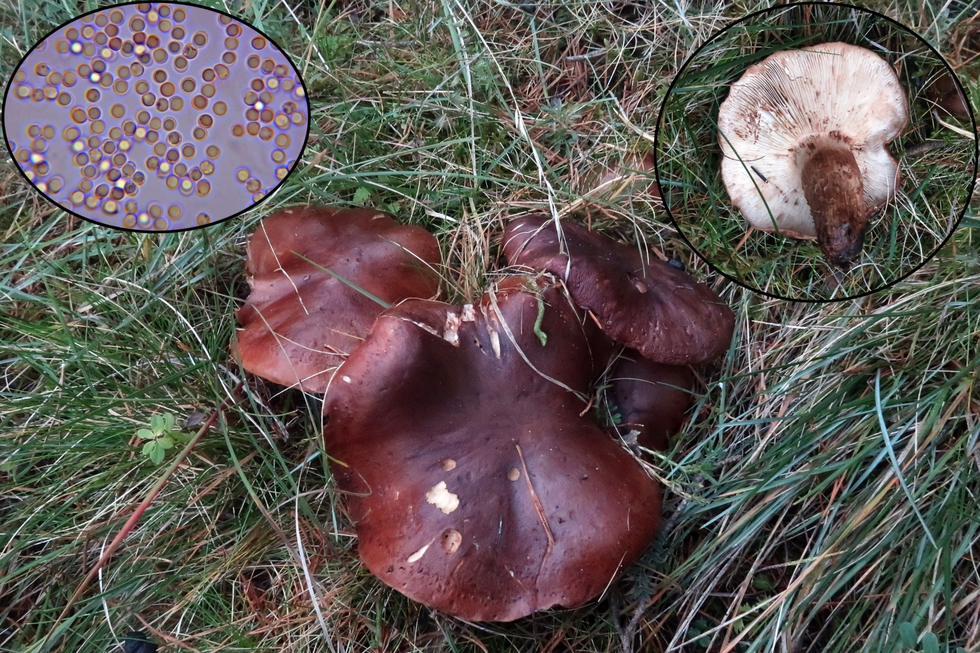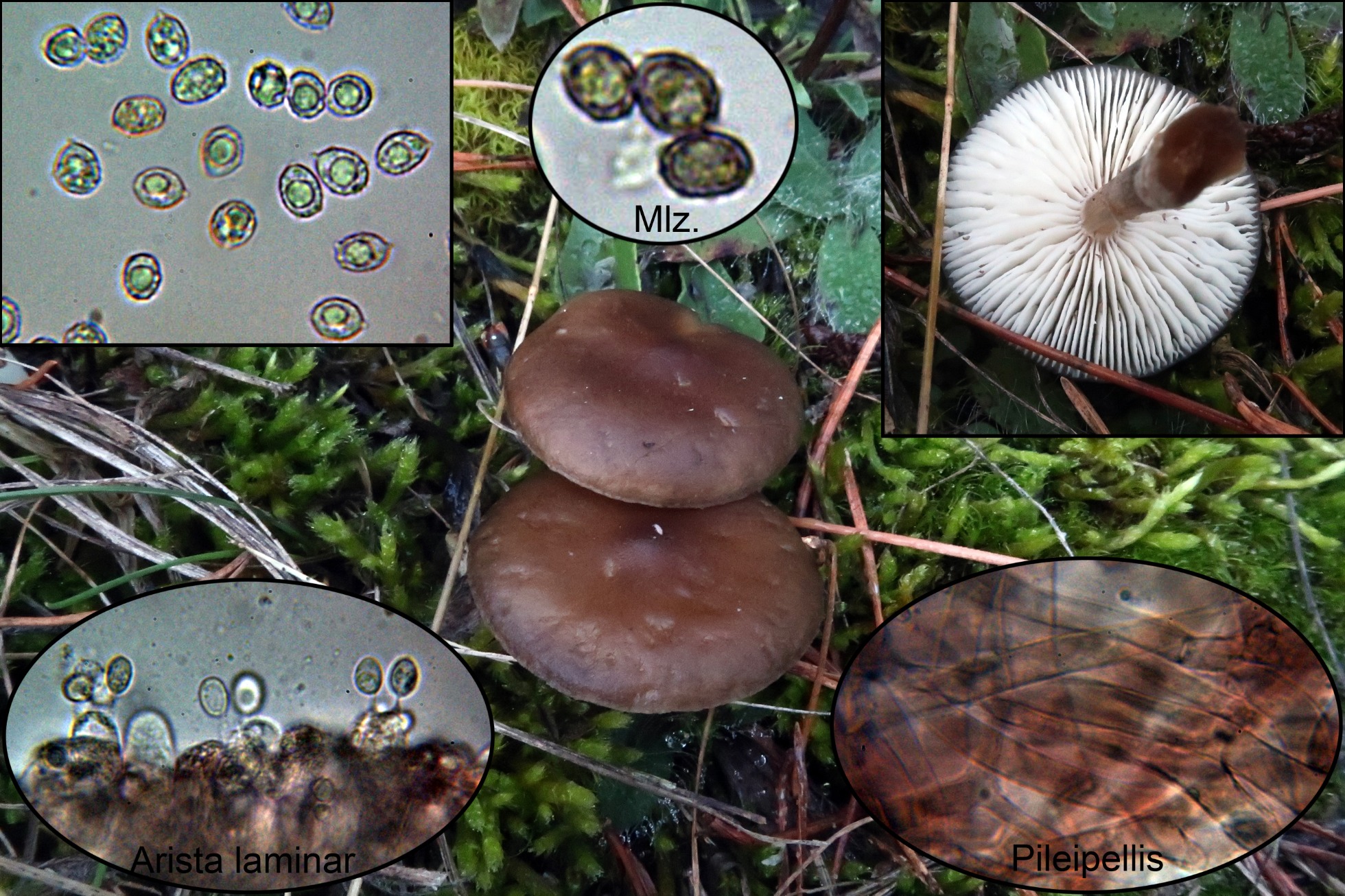 Una Melanoleuca, la ausencia de cistidios en la arista laminar cierra mucho el círculo, muy parecida a la Melanoleuca stridula, y separable solo por el cociente Q esporal, la Melanoleuca graminicola