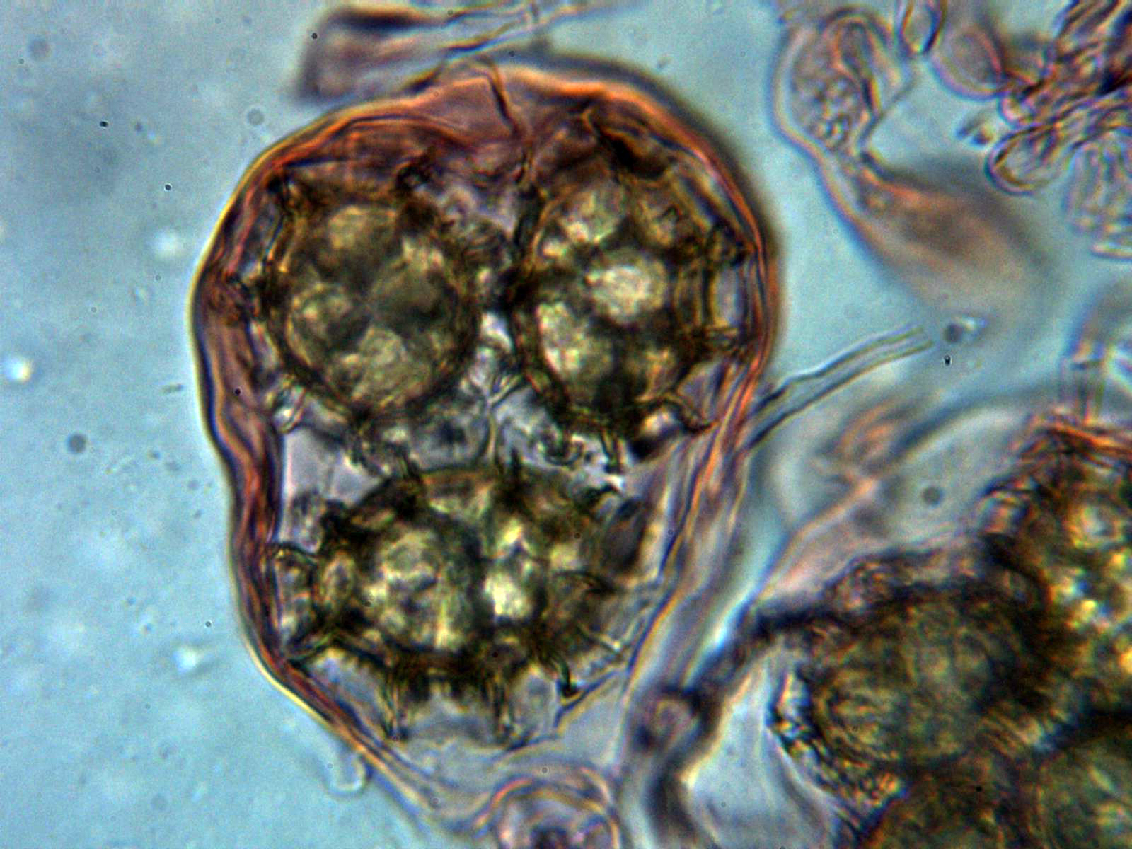 Ya comentamos Javi y yo como costaba ver las condenadas ascas de la Hydnocystis bombycina sobre todo el poder encontrar con 8 esporas ya que son super frágiles y salen expulsadas volando..............................