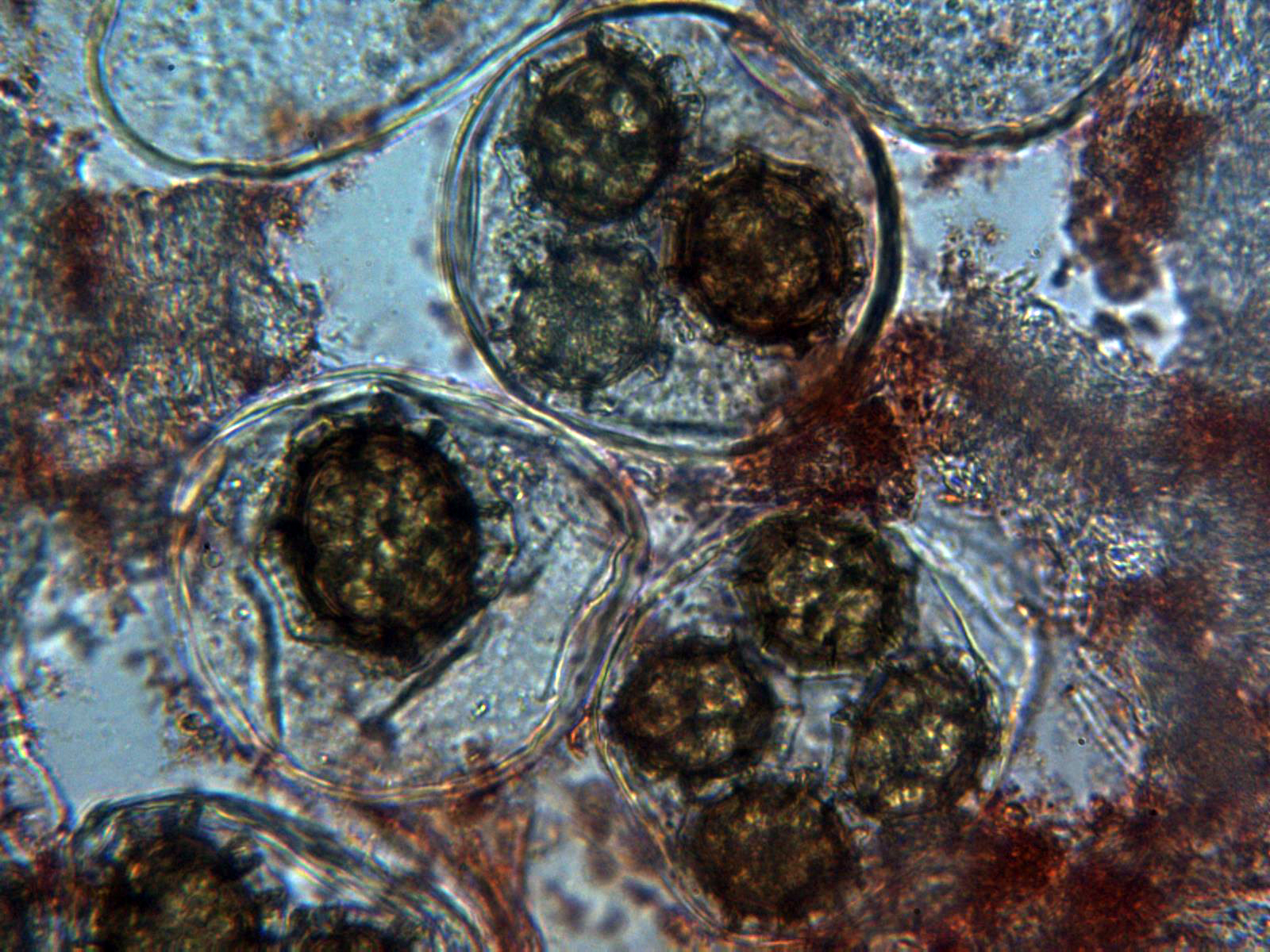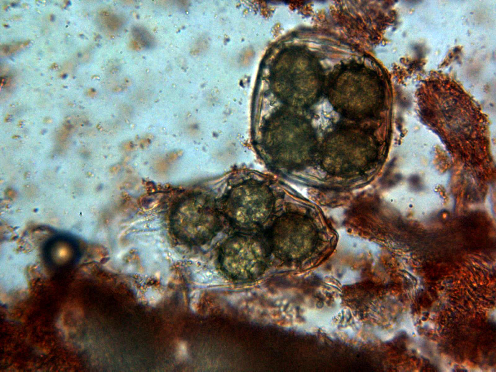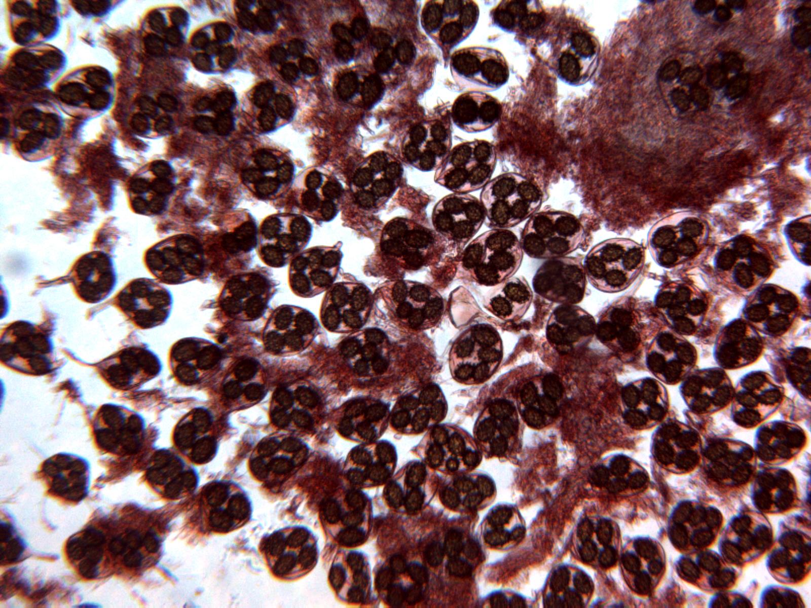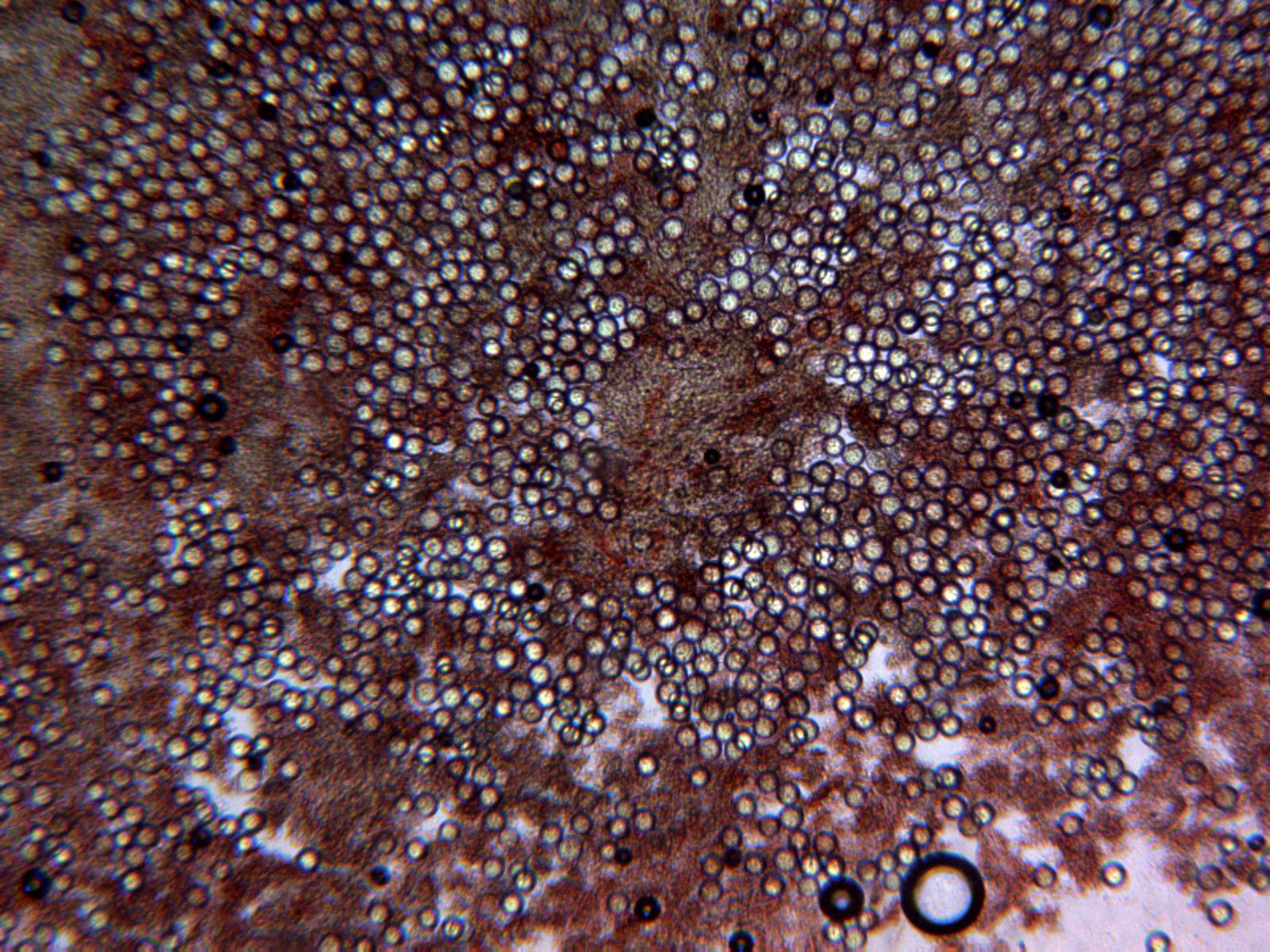 Una imagen de las esporas, imposible enfocarlas todas ya que aparecían en diferentes planos: