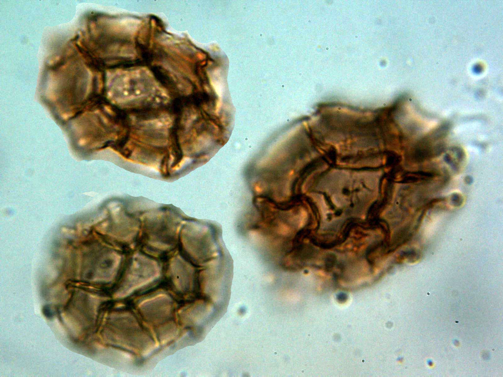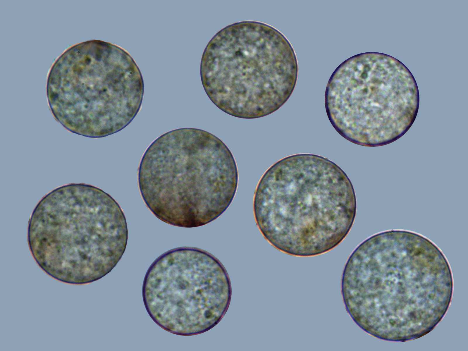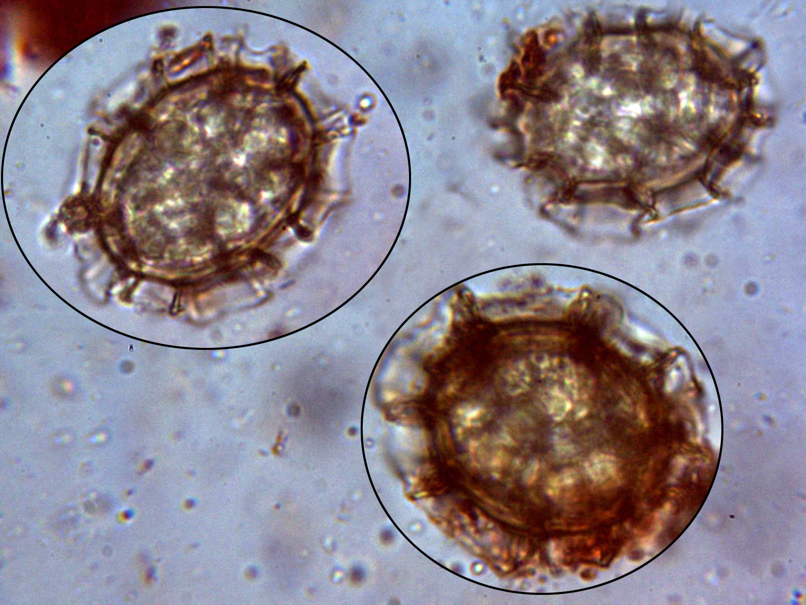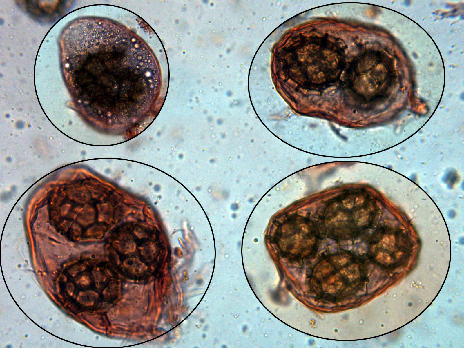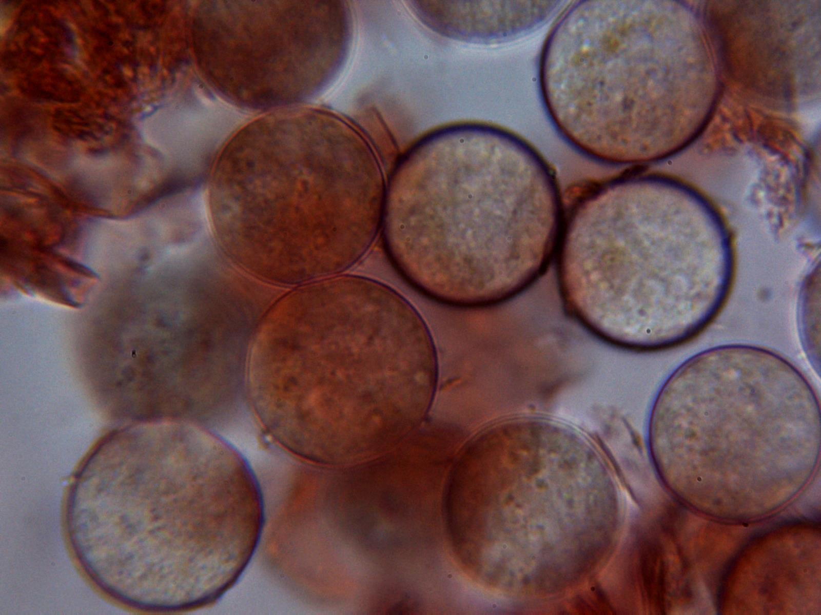 Y una composición limpiando el fondo de varias imágenes de esporas, a destacar su forma perfectamente esférica: