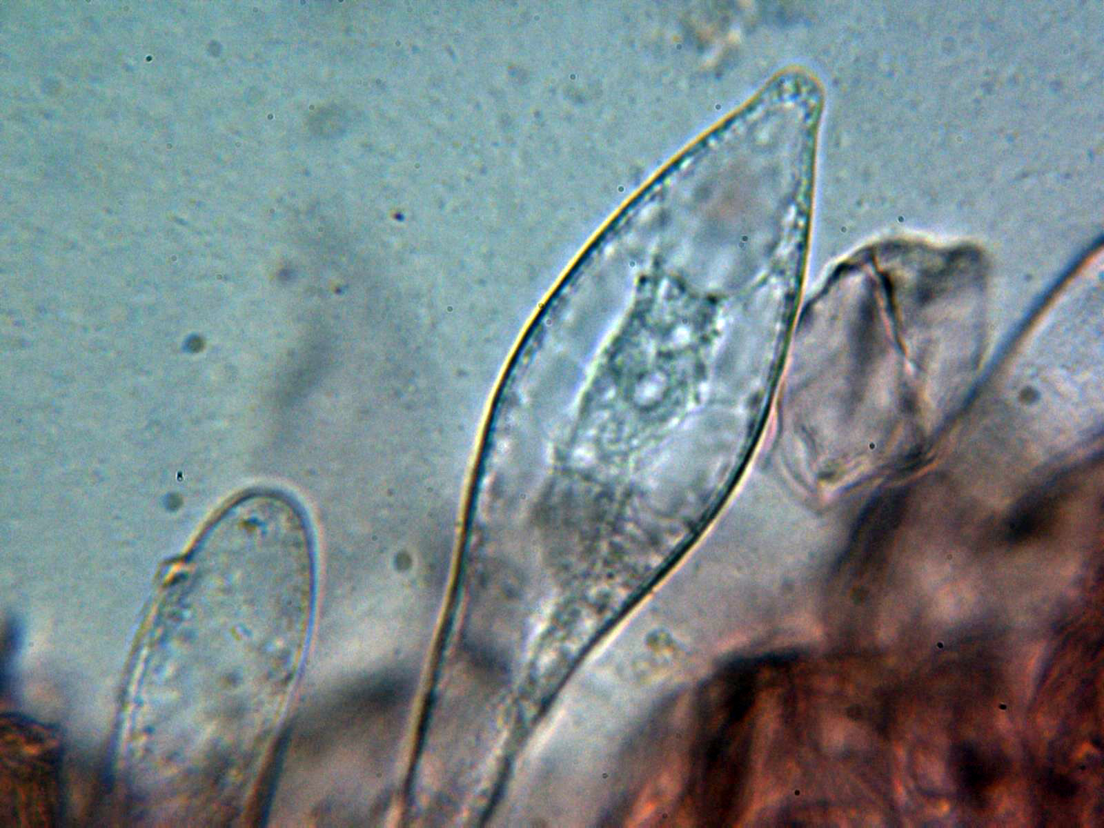 Y de nuevo con la misma especie. Con unos queilocistidios de 24.9 - 39.7 × 7.1 - 15.2 µm., y con unas medidas esporales muy similares de: