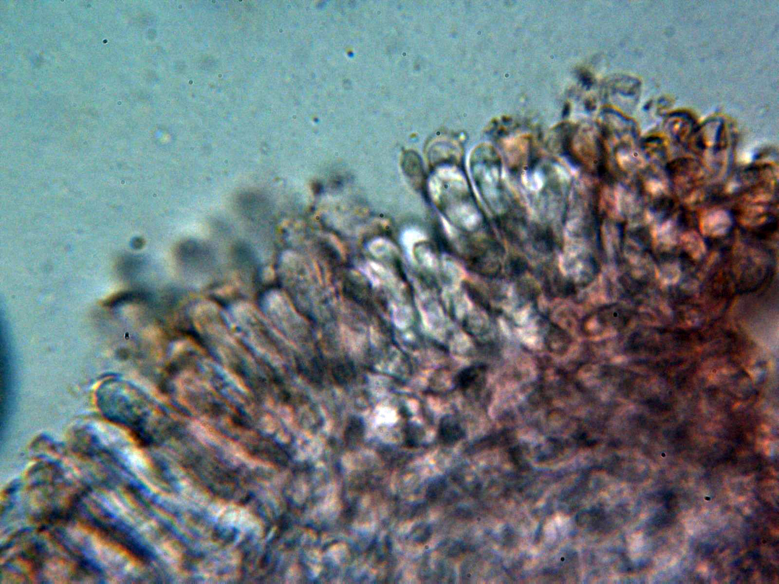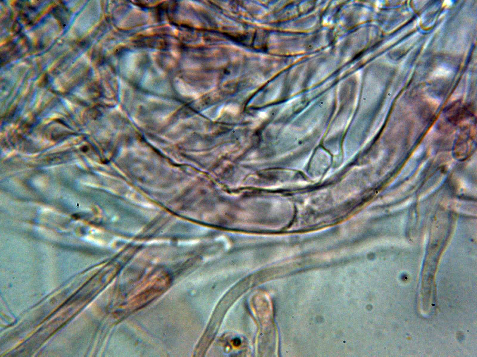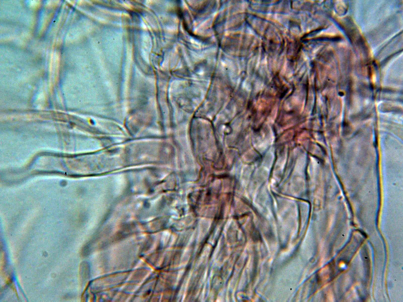 Una que en un primer momento me pareció interesante, y que por su microscopía no puedo pensar en nada más que no sean unos primordios de Hohenbuehelia sp.