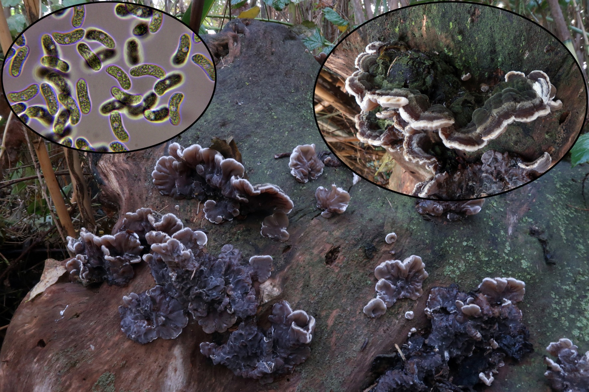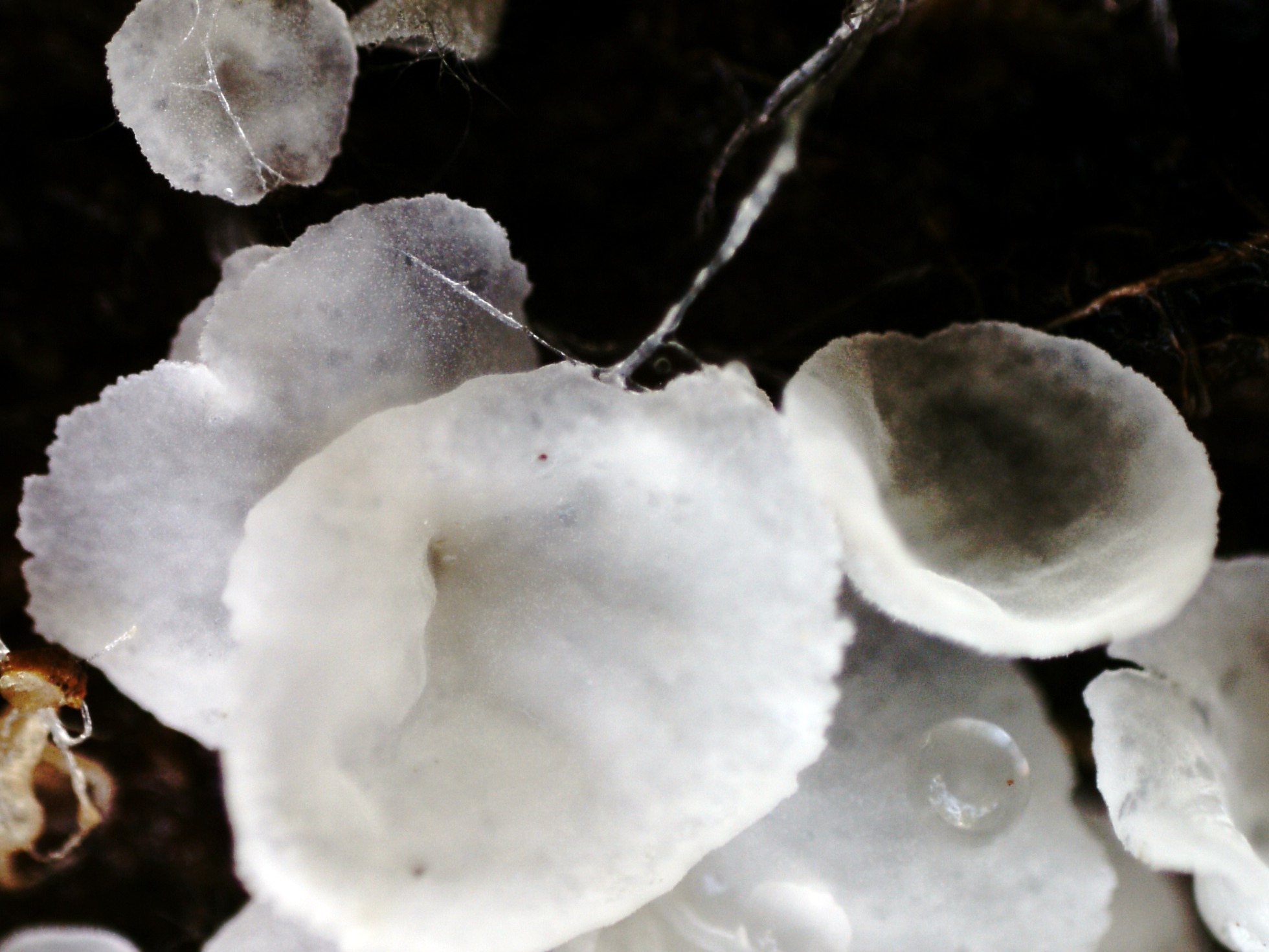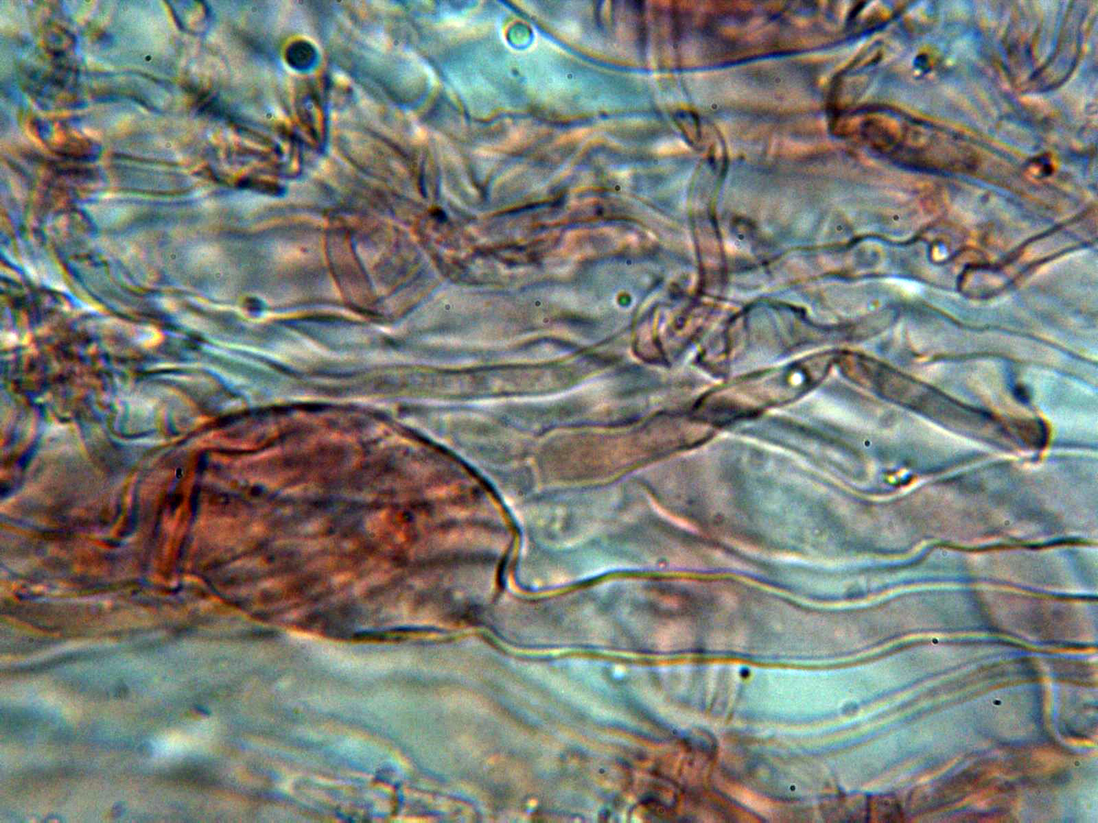 Una que en un primer momento me pareció interesante, y que por su microscopía no puedo pensar en nada más que no sean unos primordios de Hohenbuehelia sp.