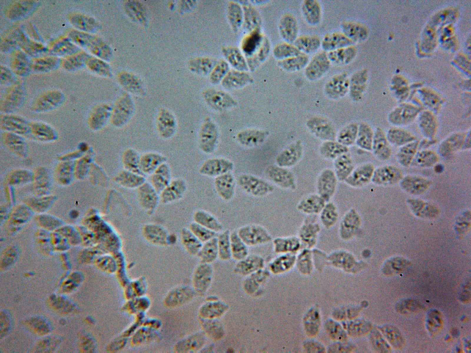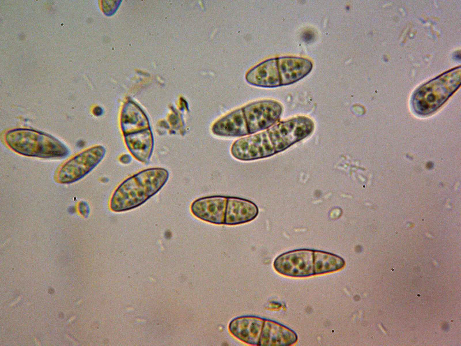 Esporas hialinas y de difícil observación, a 1000 aumentos y en agua destilada: