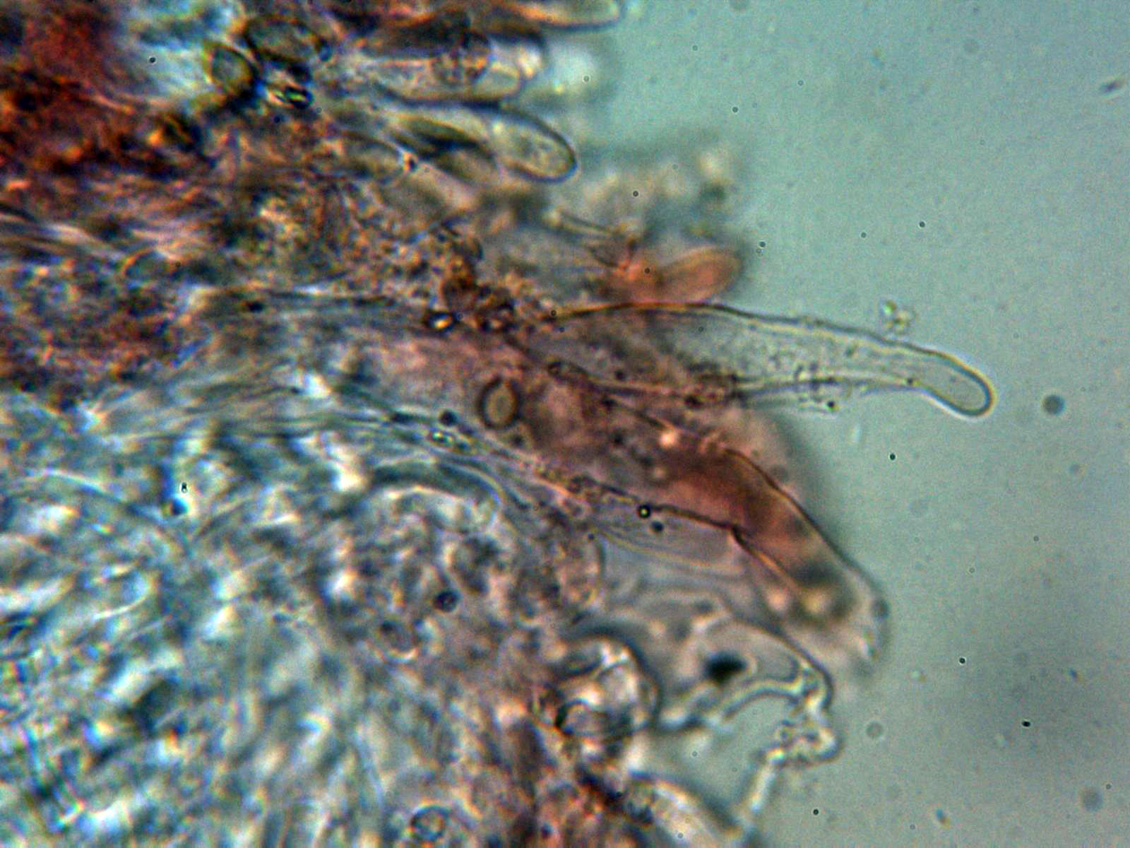 Especie muy parecida al género Lachnum, pero con una microscopía muy diferente ya que se trata de un Basidiomiceto.