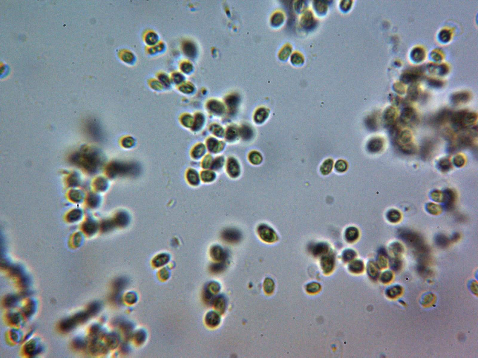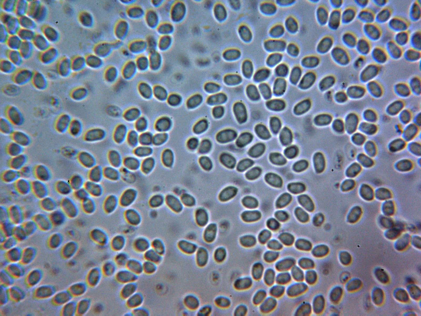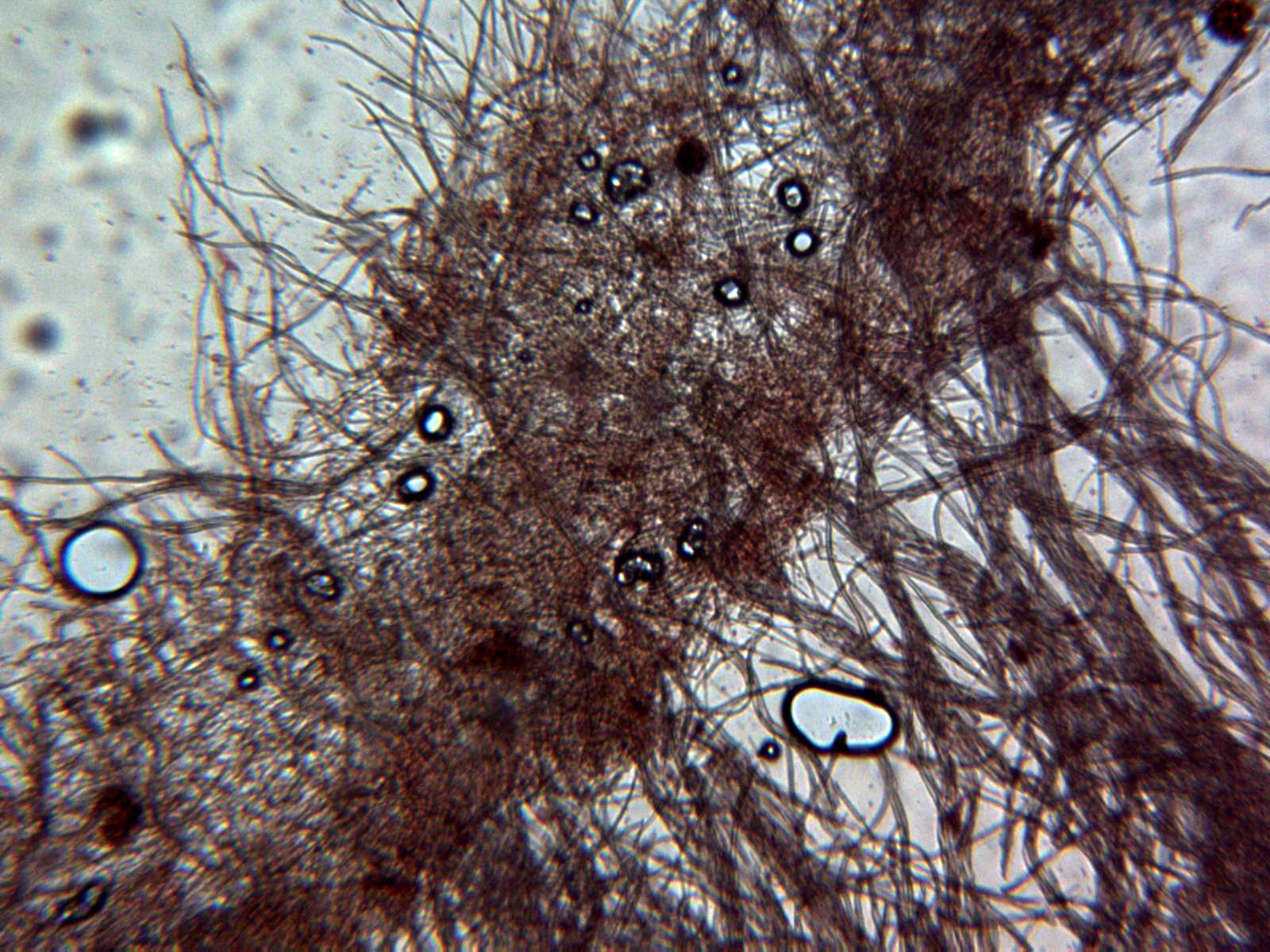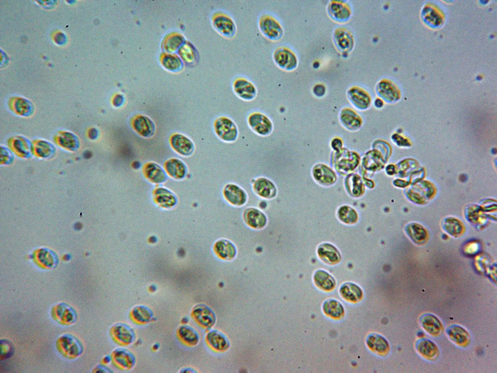 Abundantes clamidosporas presentes en las muestras preparadas, en especial al acercarnos a la base o al borde del sombrero.