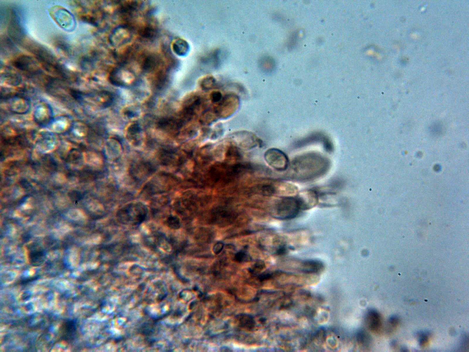 Aunque no tengo dudas de su identidad estas medidas esporales se encuentran por debajo de las indicadas por Ryvarden (5-7 x 2.5-4 μm.), y también por debajo de las indicadas en "Les Champignons de Suisse" (5.5-7 x 3-3.5 um.). Mis medidas aunque también por debajo estarían un poco mas acordes con las del trabajo de Enrique Rubio, dejo el enlace: