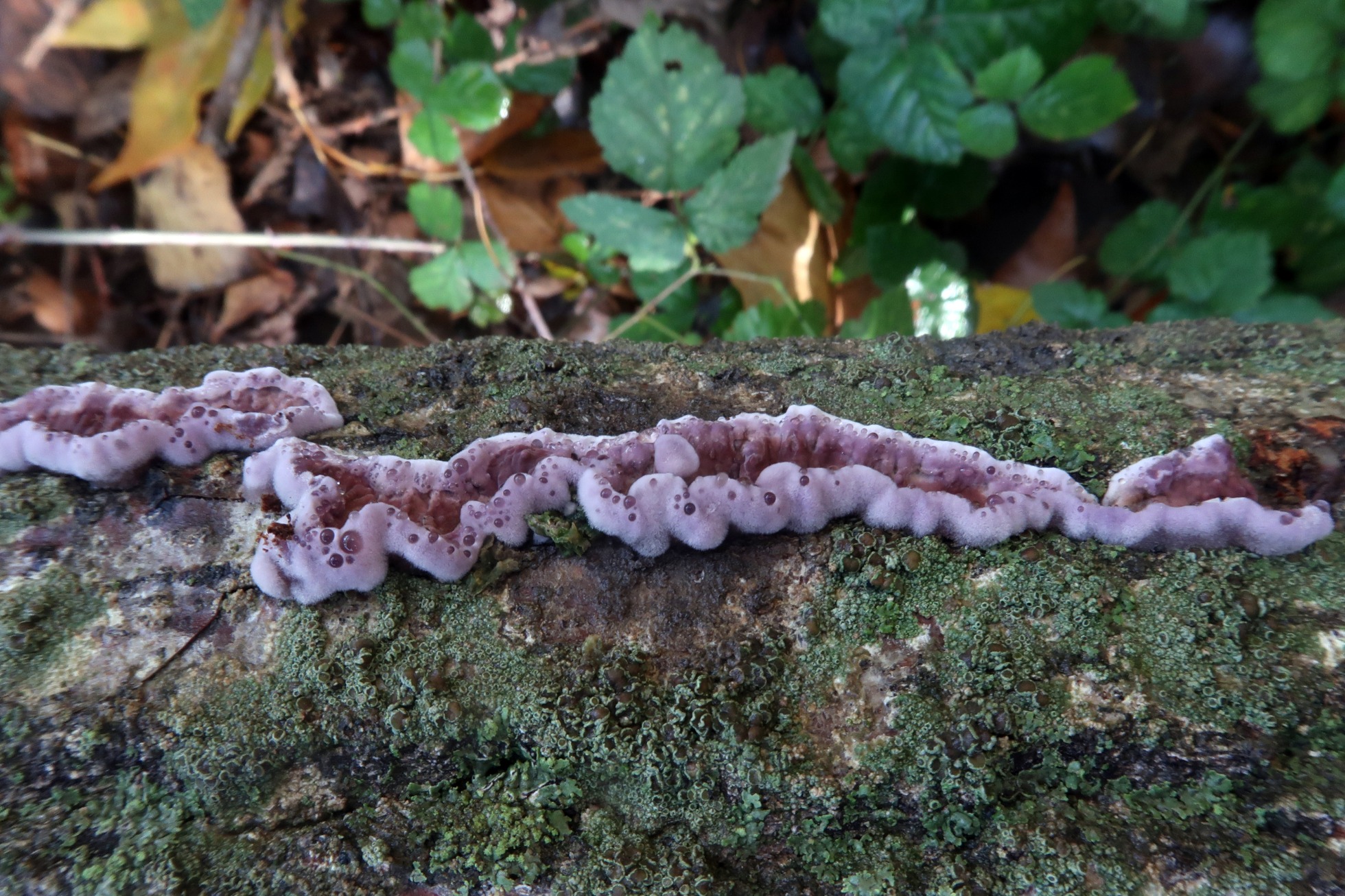 Una que me encontré hace poco pero con un aspecto muy distinto, el Chondrostereum purpureum