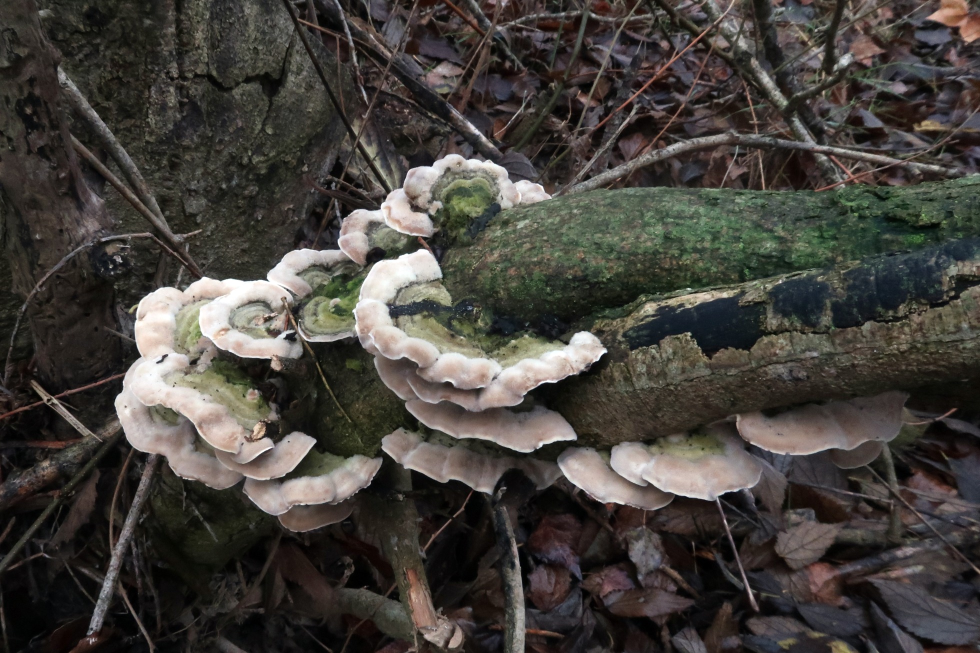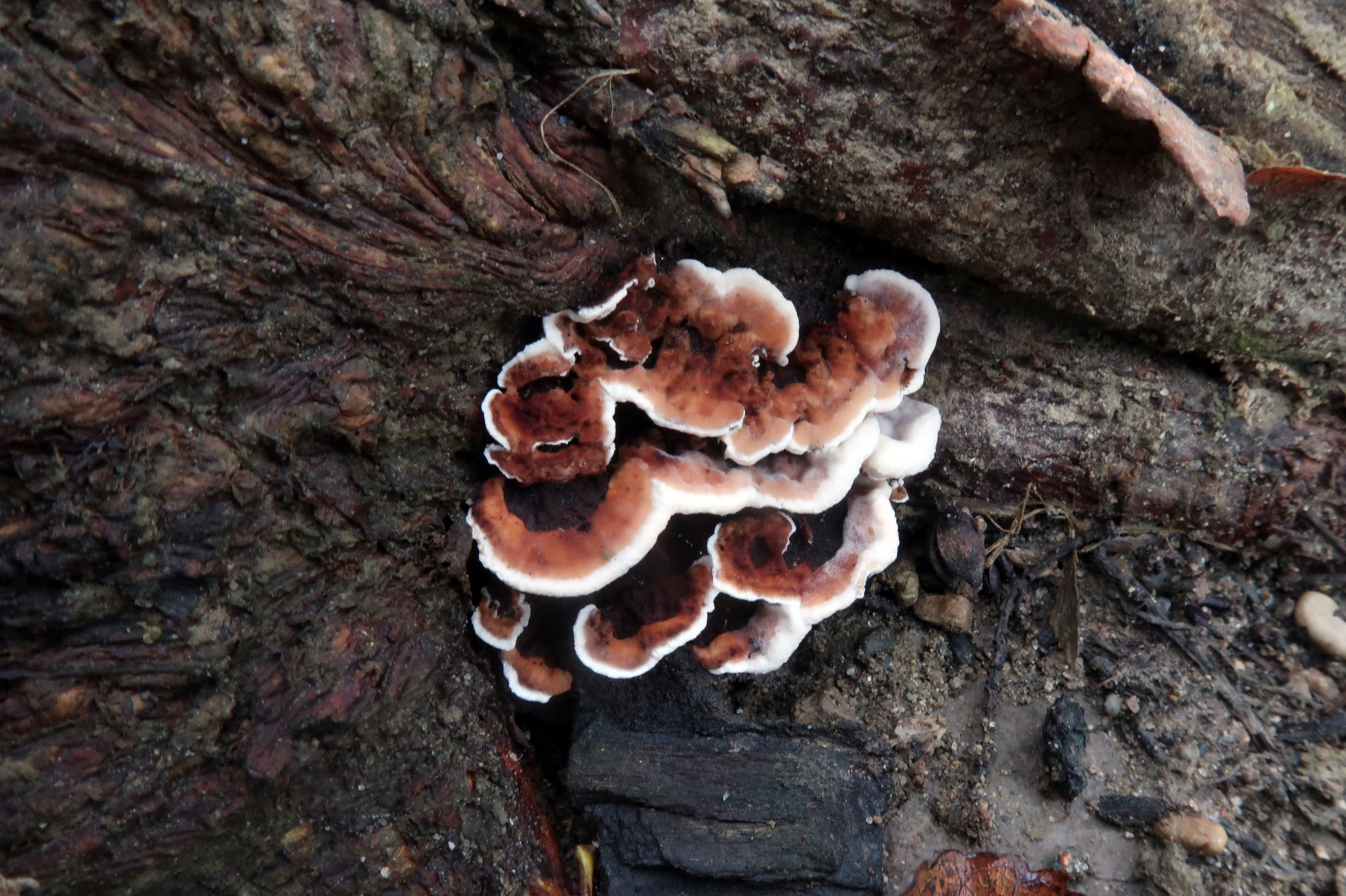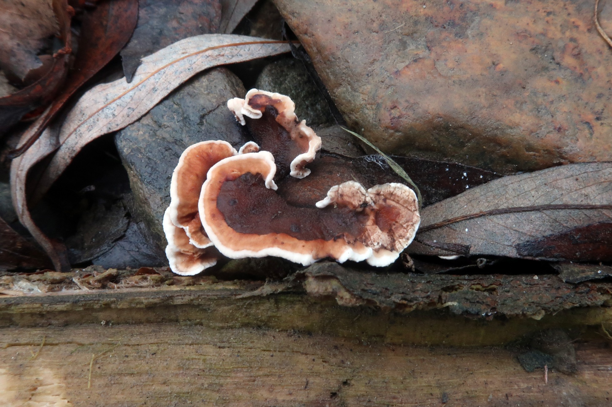 Una de las características que sirven para identificar a la Cerrena unicolor a pie de campo es la línea negra que separa la zona pileica de la zona carnosa del sombrero: