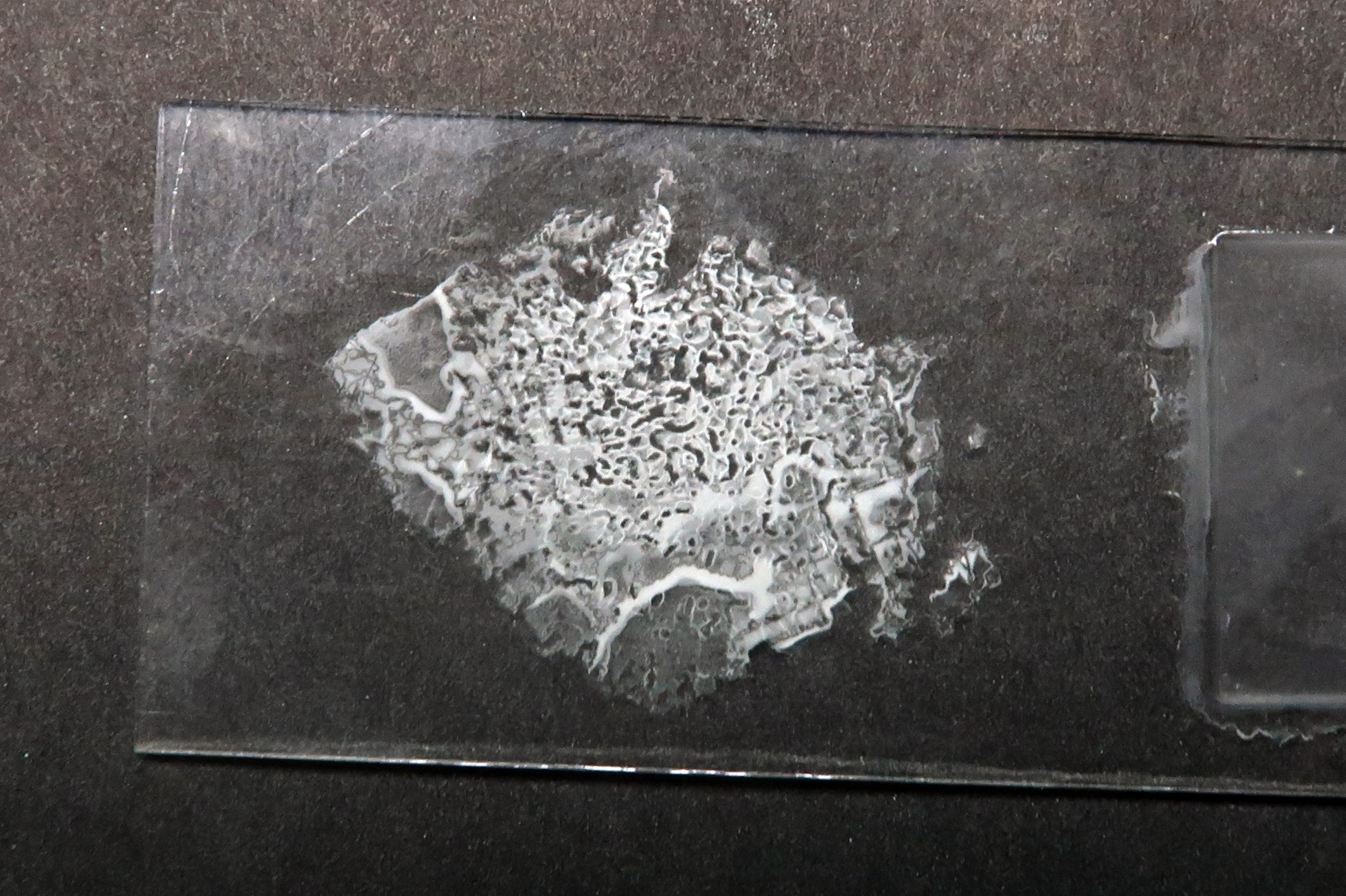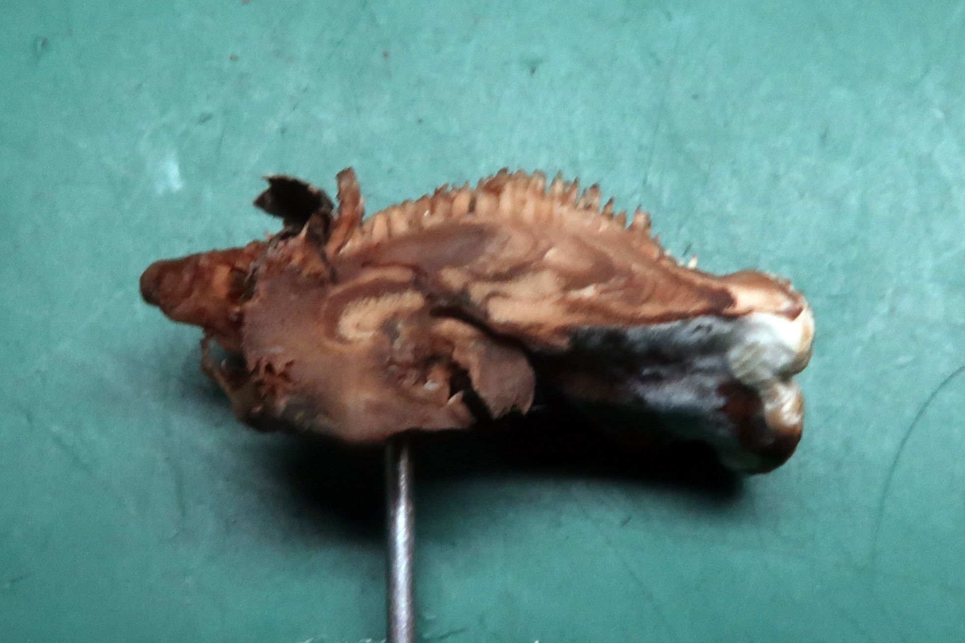 Detalle de la sección, de color crema, un poco mas oscuro en algunas zonas ya que el ejemplar estaba embebido en agua: