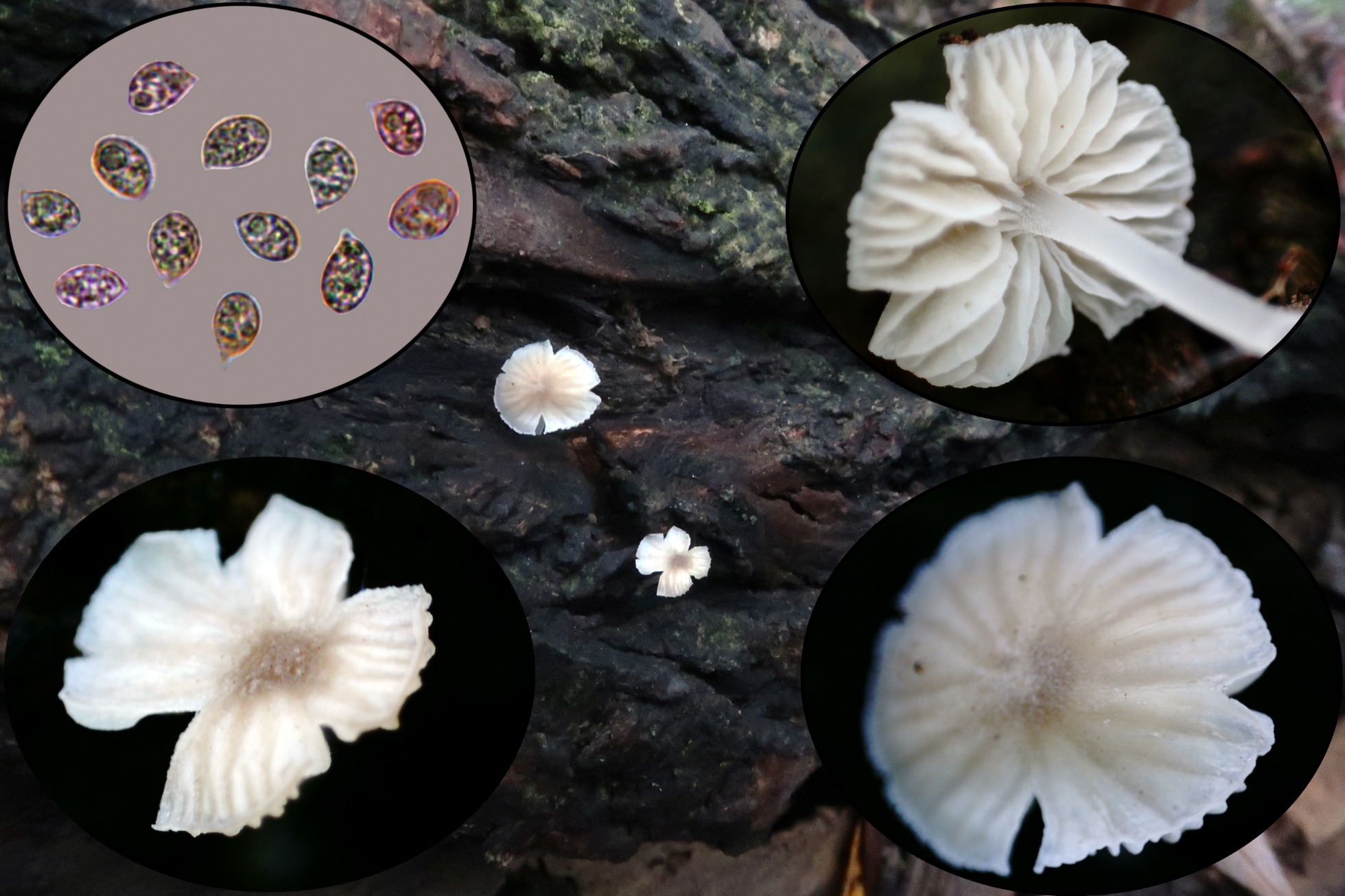 Y para terminar una pequeña Mycena sobre un tronco de muy probablemente Salix, la Mycena olida, según Index Fungorum actualmente Phloeomana minutula