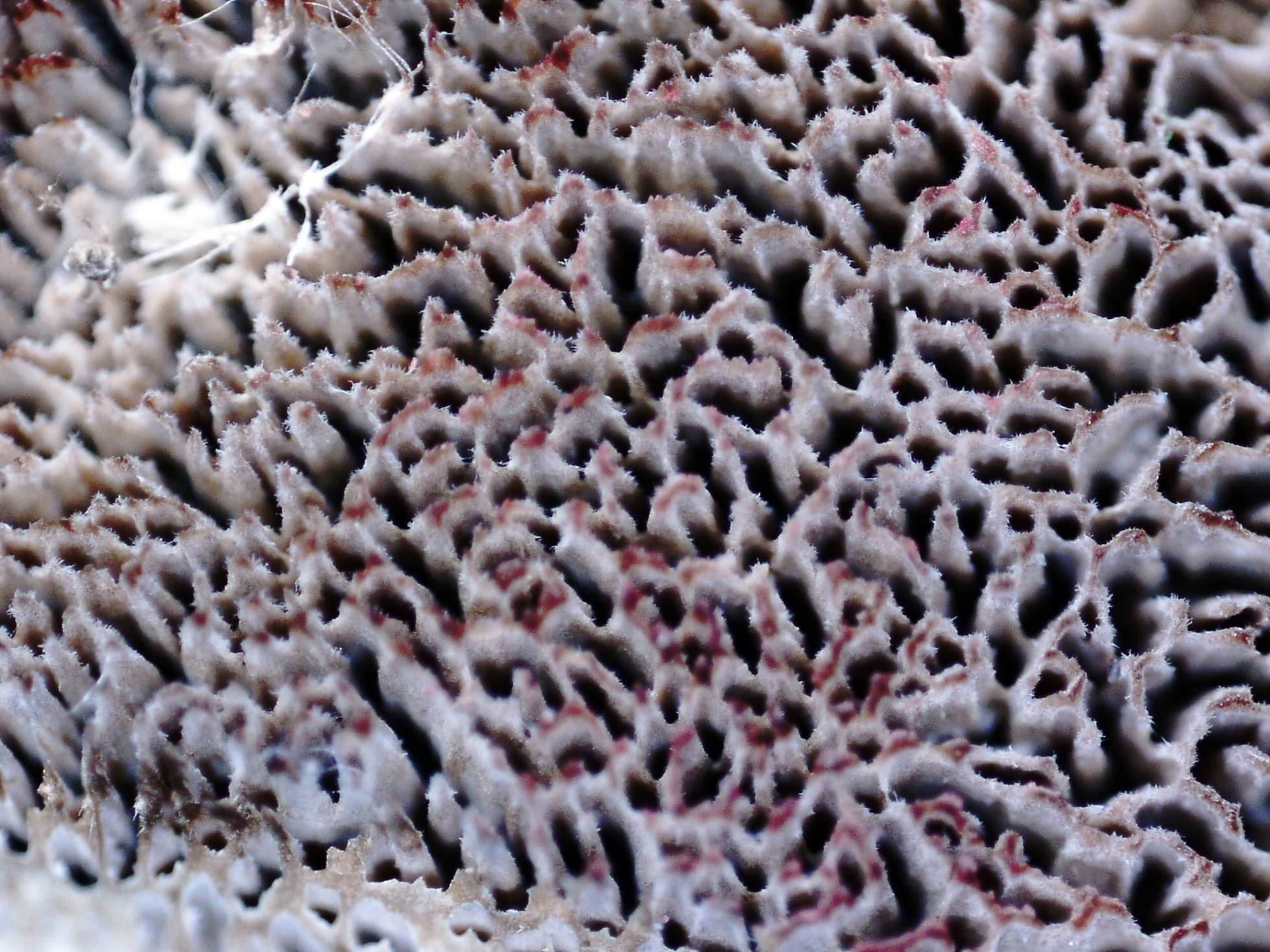 Ampliación de la superficie poroide laberíntica, esta es una de las características de la especie, esta superficie no cambia de color al tacto y tampoco con la manipulación: