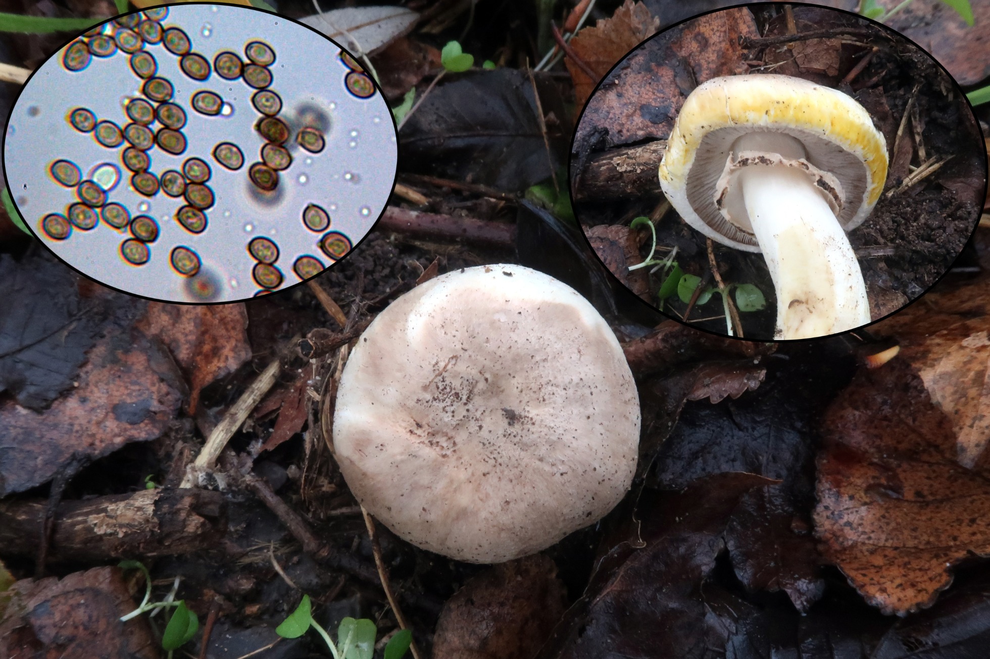 Un Agaricus, su olor a fenol u orines, sus pequeñas esporas y sobre todo el amarilleamiento del sombrero al más mínimo roce lo caracterizan, el Agaricus xanthodermus
