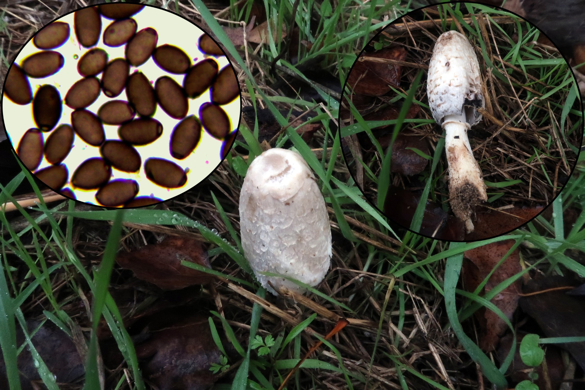 Uno bastante común en el borde de caminos y senderos, con esporas con un muy marcado poro germinativo, el Coprinus comatus