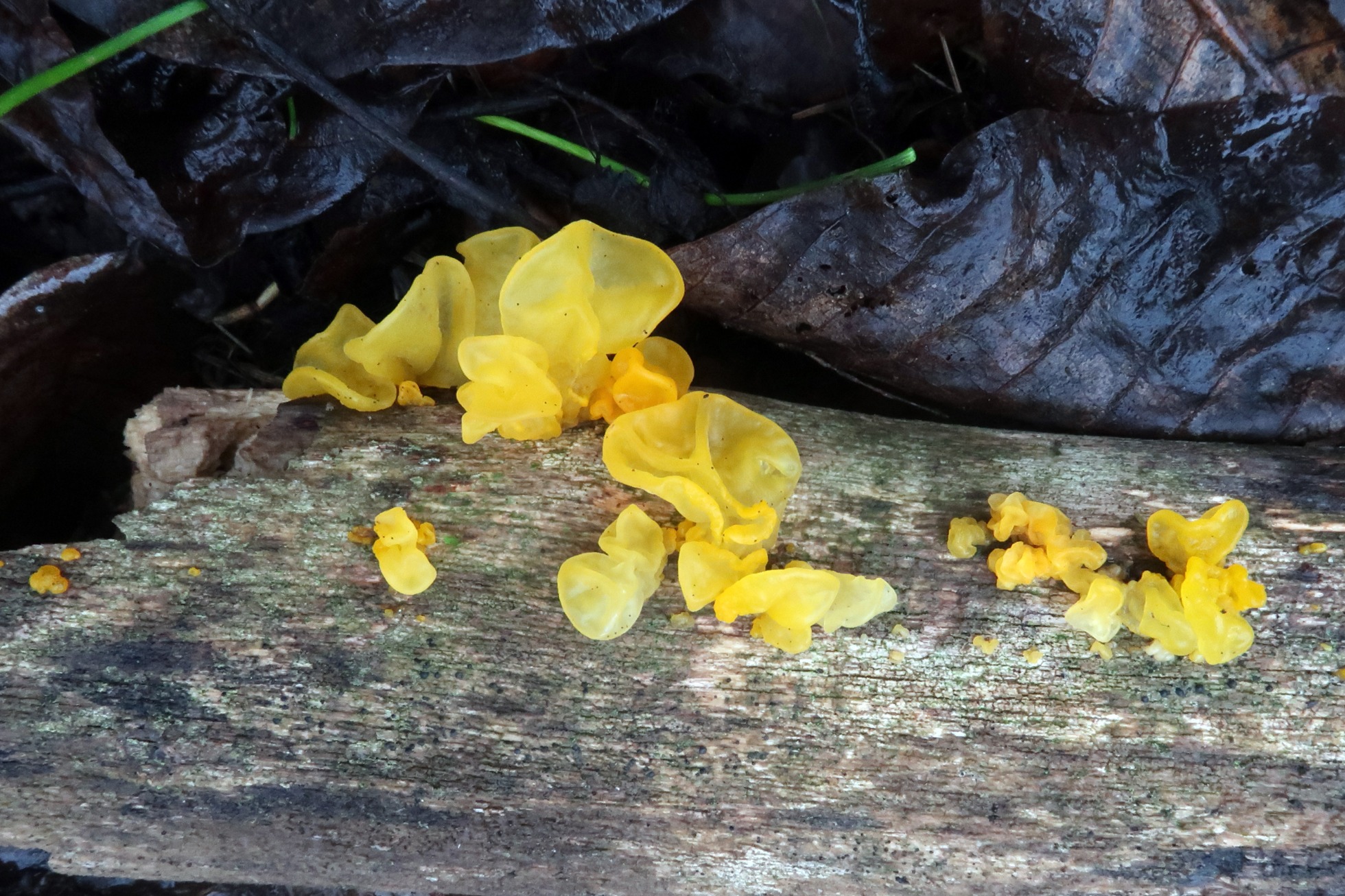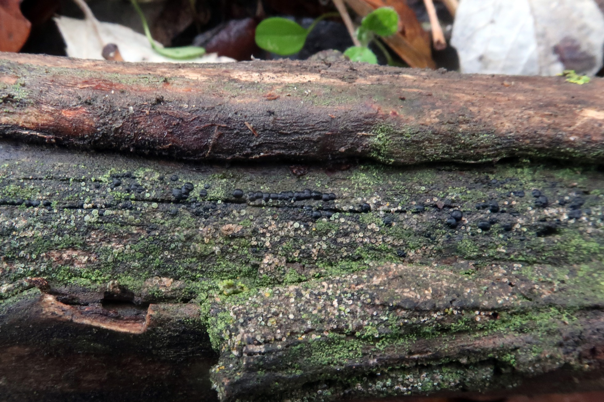 Sobre un tronco tumbado de planifolio, tenemos la Patellaria atrata