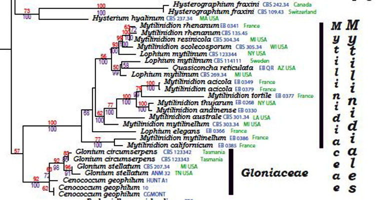 Dejo una captura de las Mytilinidiaceae secuenciadas hasta 2009: