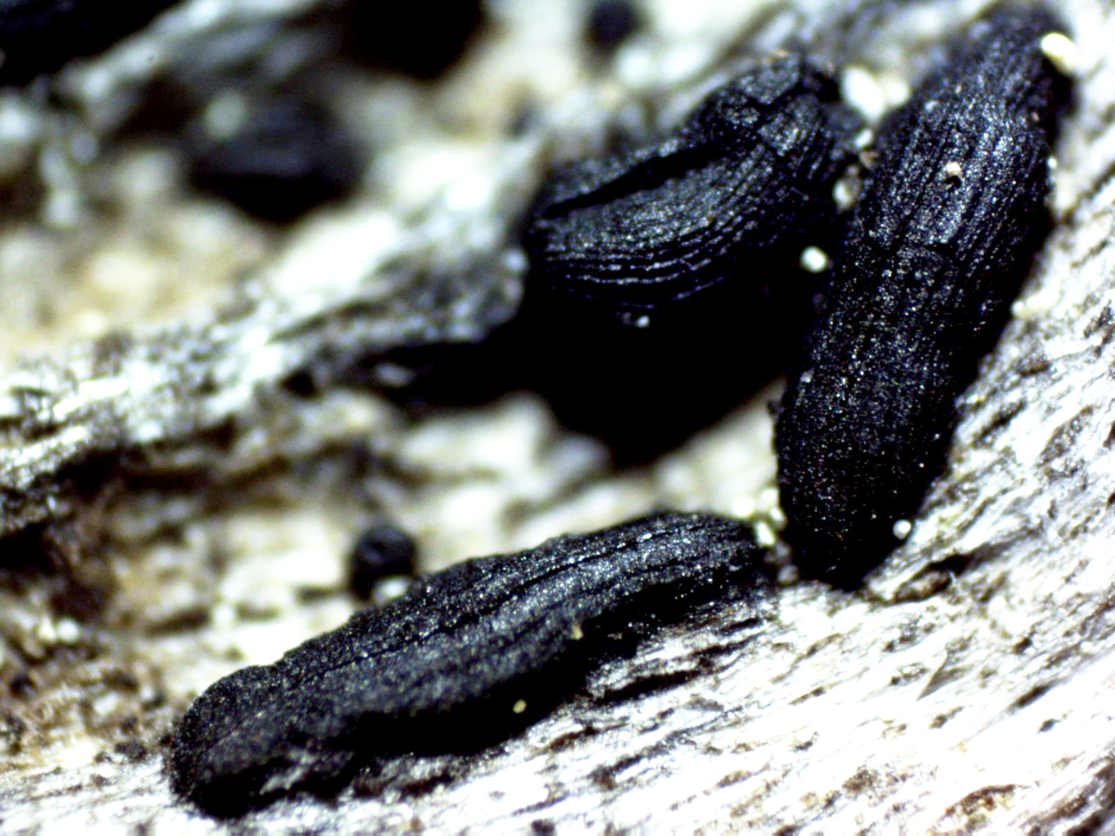 Atendiendo a la claves del mismo informe, con la que parece encajar mejor es con la cosmopolita y común sobre muchos tipos de madera la "Mytilinidion tortile", dejo una captura con las claves: