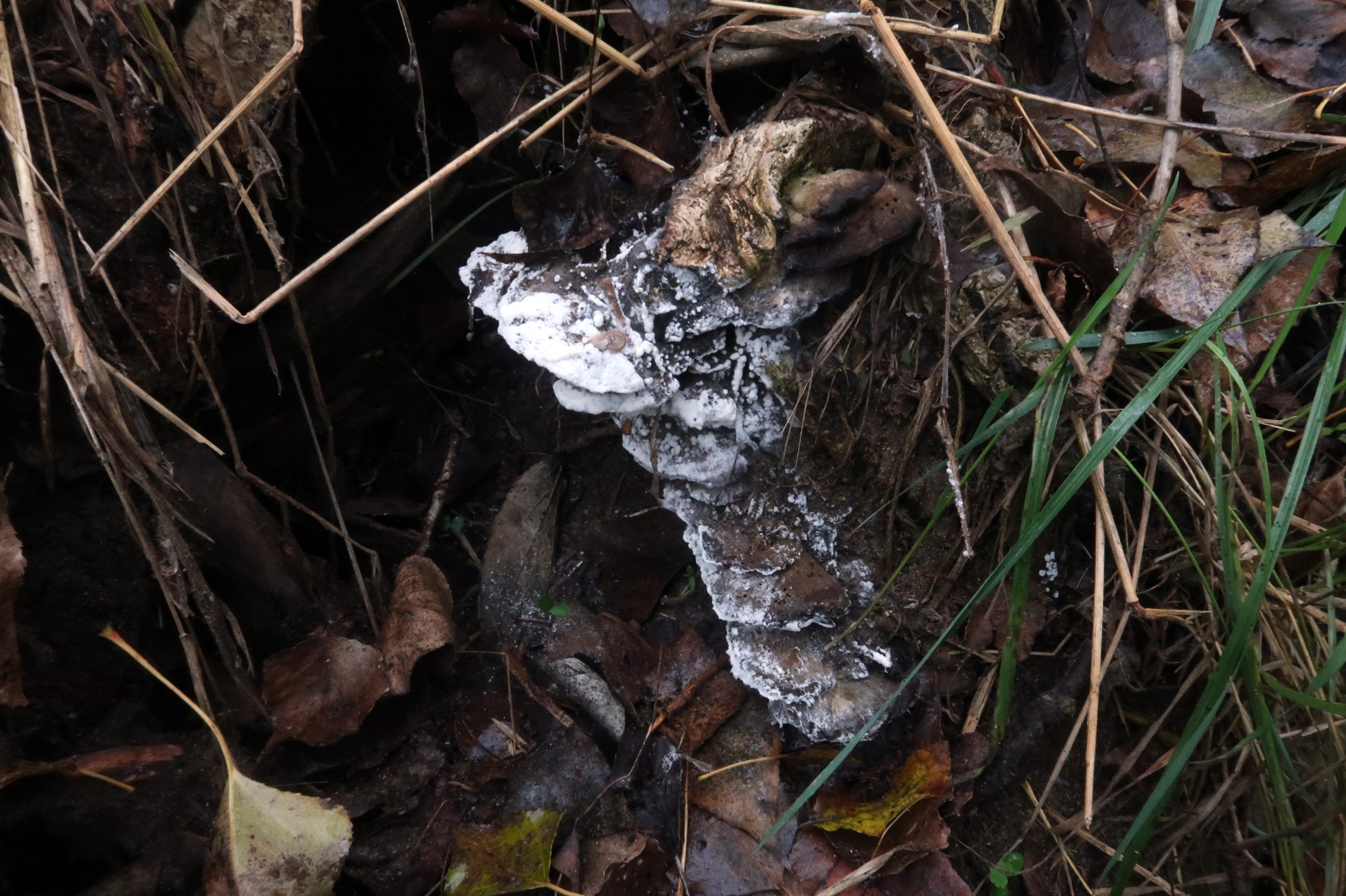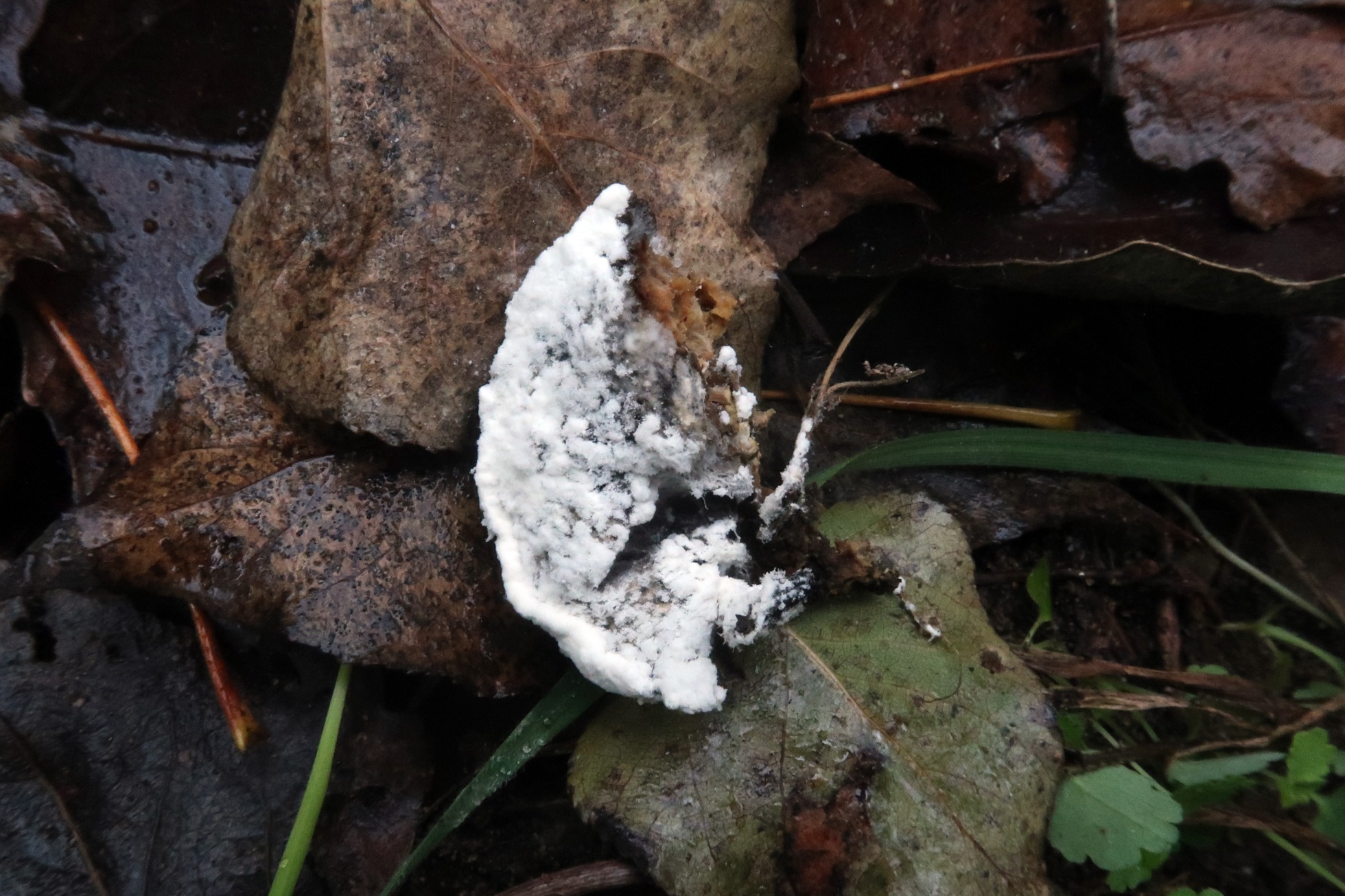 El primero es un parásito de un Polyporal fotografiado el 15 de Noviembre de 2020, dicho Polyporal ya bastante degradado, sobre un tocón de chopo, aunque por su disposición y aspecto probablemente Oxyporus populinus. Dado que se trataba de un anamorfo (fase asexual) y al no poder dar con su identidad opté por el análisis molecular, la secuenciación ITS determinó que se trataba con una coincidencia del 100% de Hypomyces aurantius (MH459151)