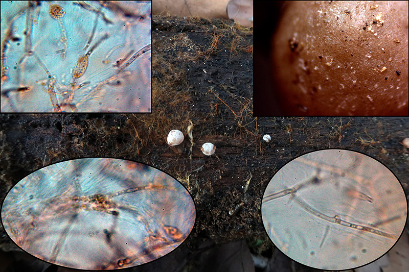 Una Exidia, que además de no poder obtener esporas como en el caso del Dacrymyces, también estaba parasitada, lo mas probable es que se tratara de primordios de Exidia repanda, así que de momento queda como Exidia cf. repanda