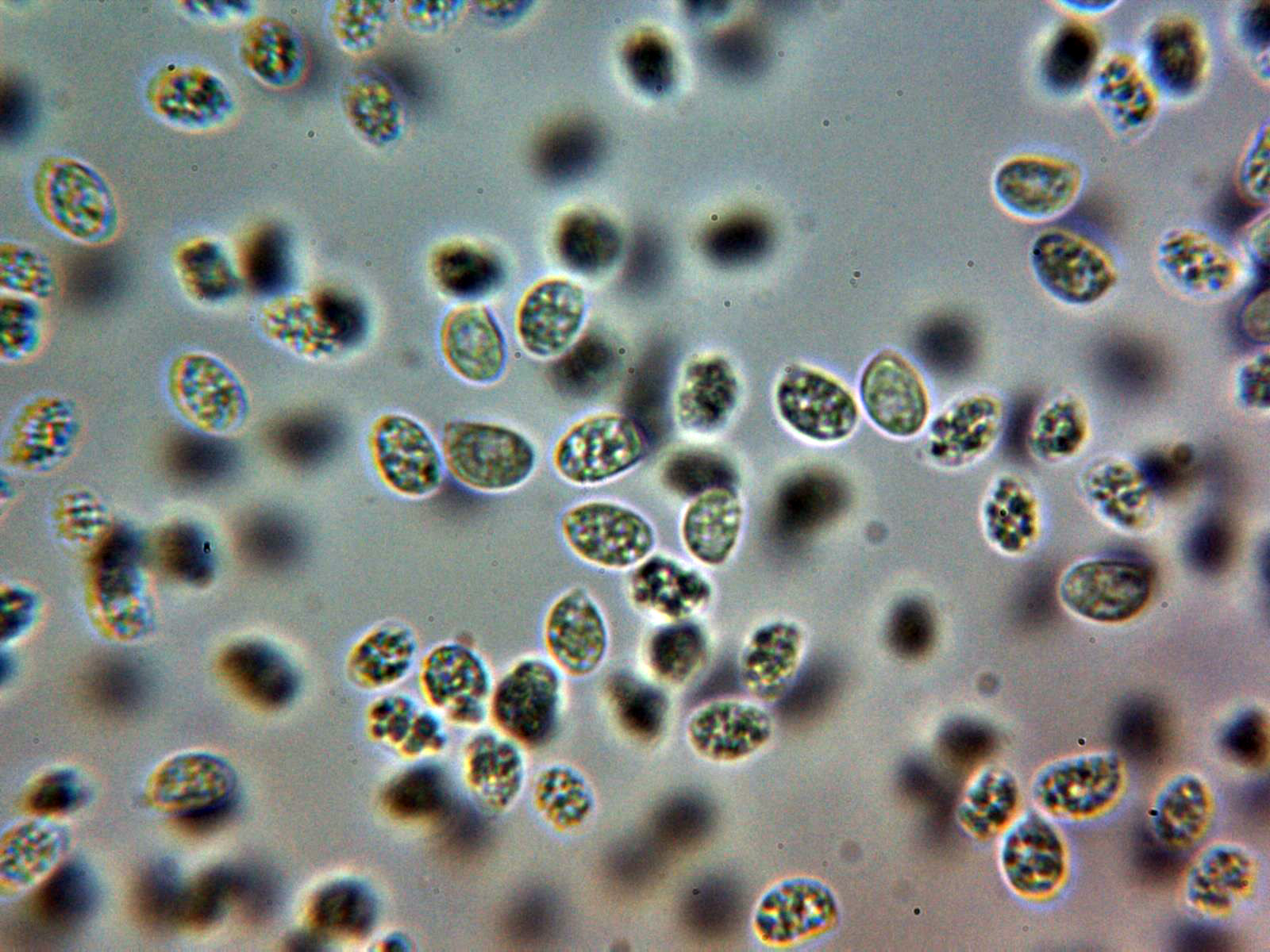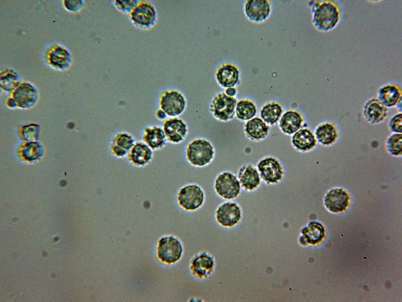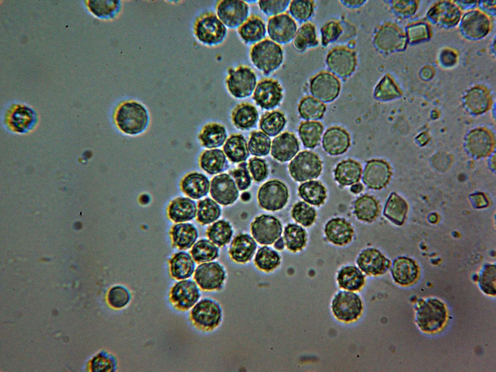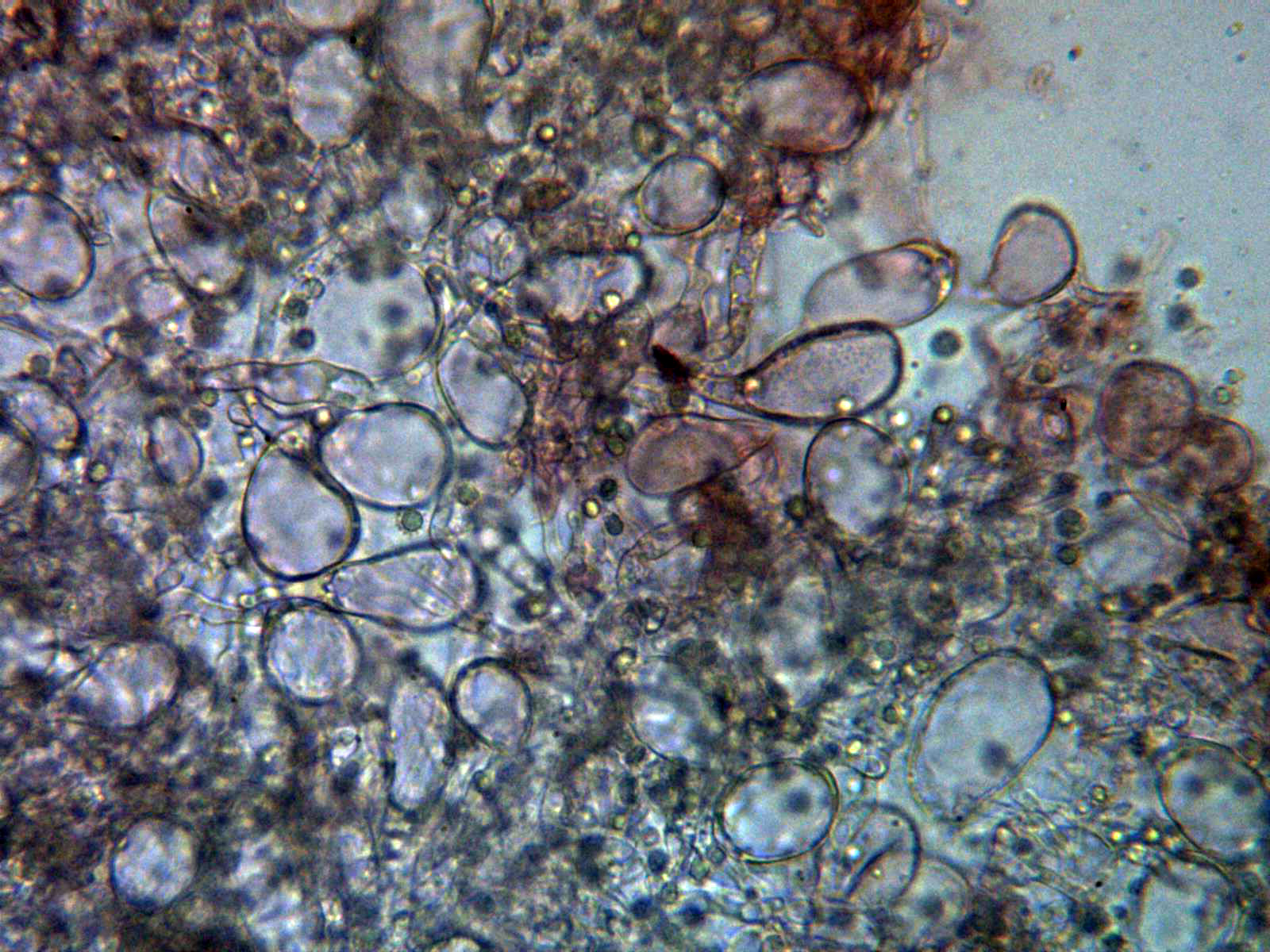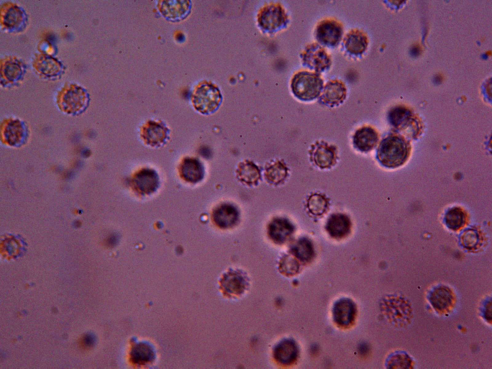Las pocas esporas obseervadas no sirven para una medición fiable.