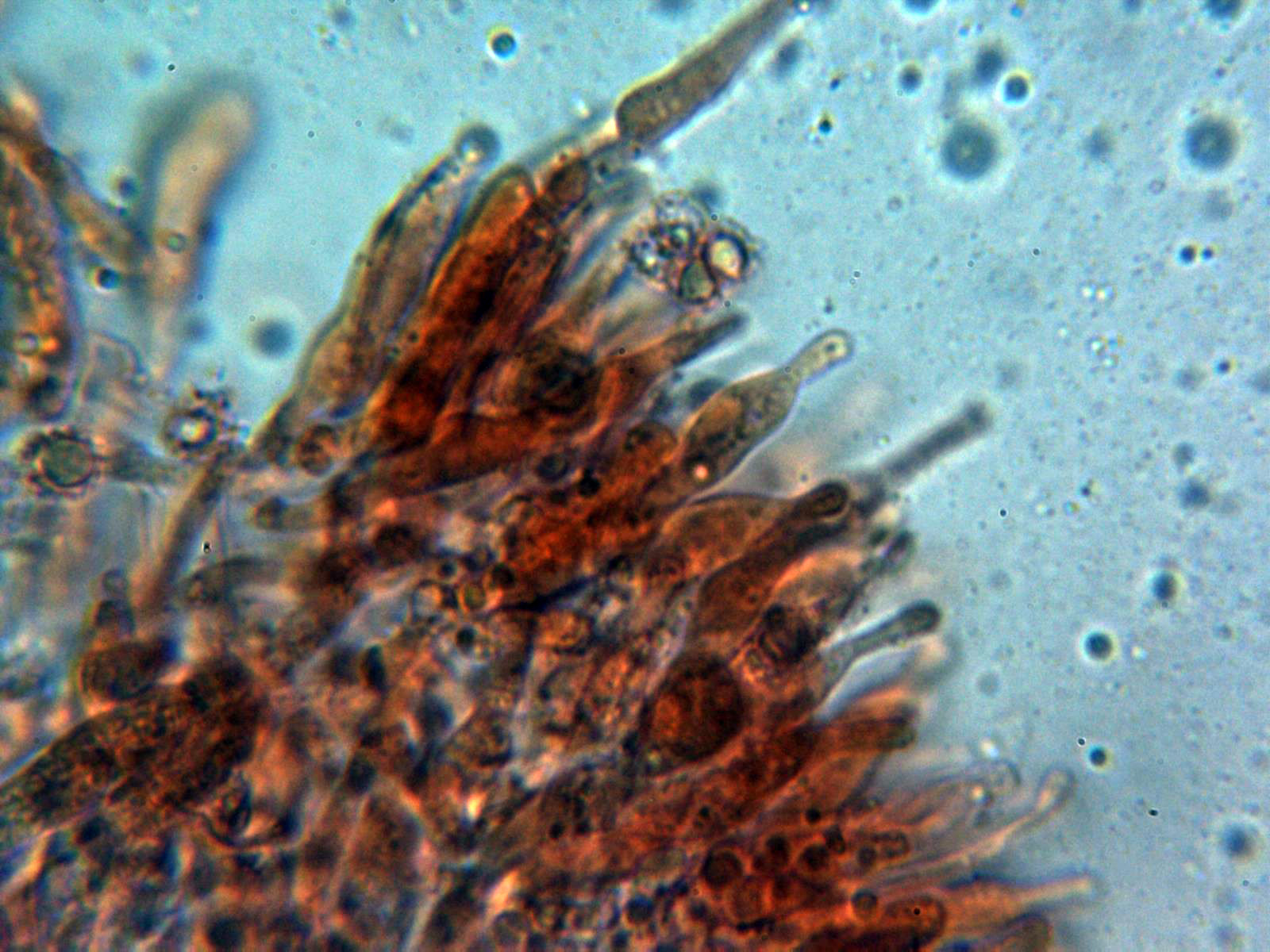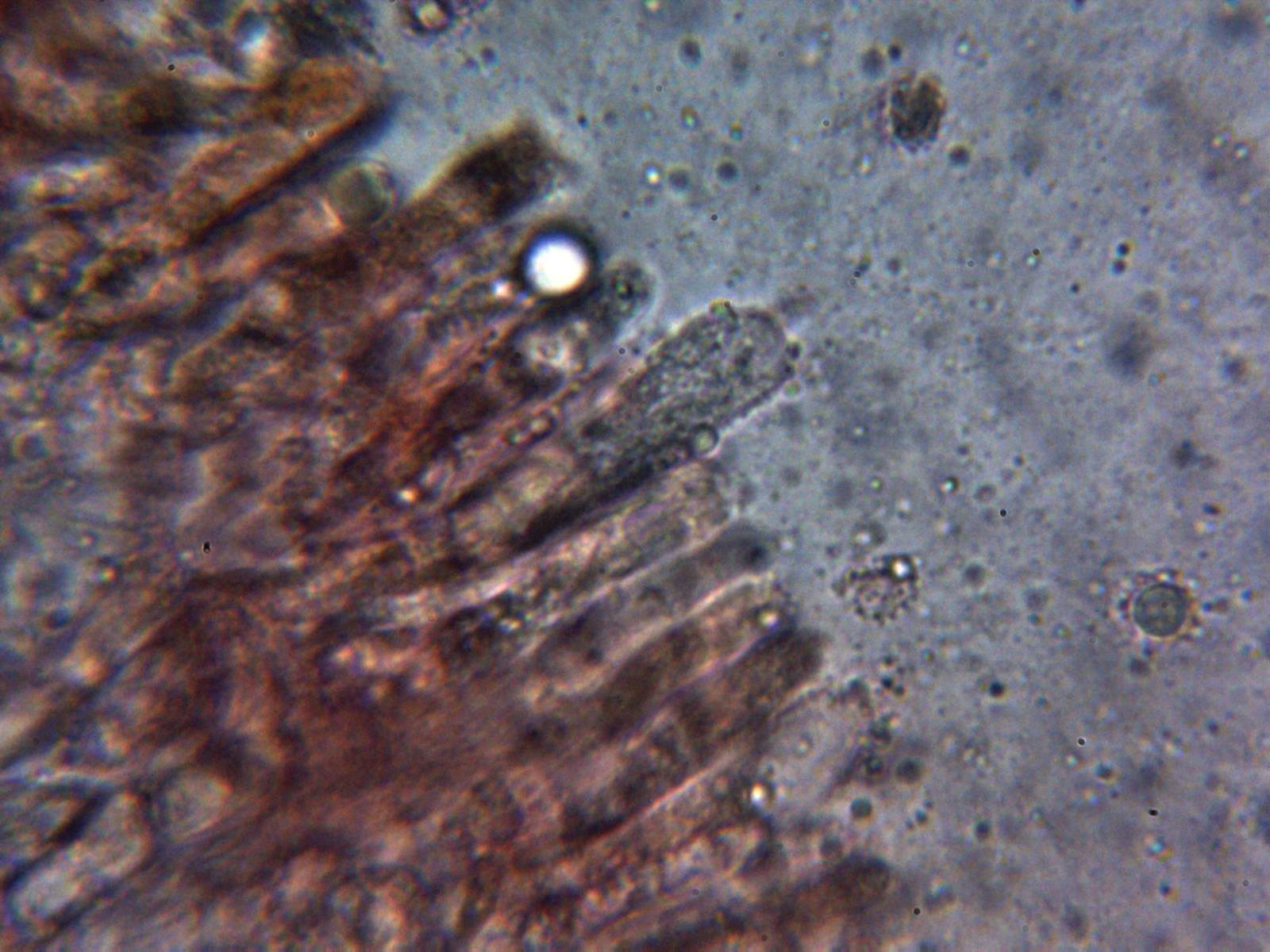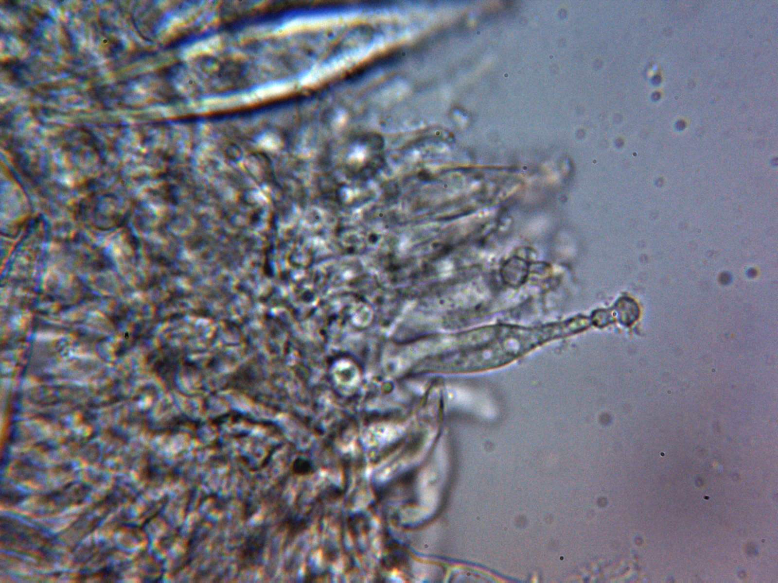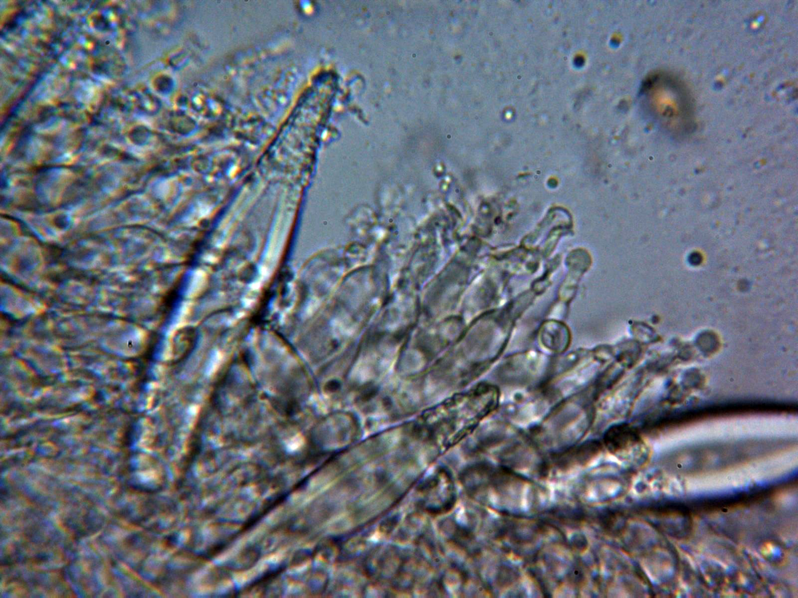 Cistidios metuloides a 400 aumentos: