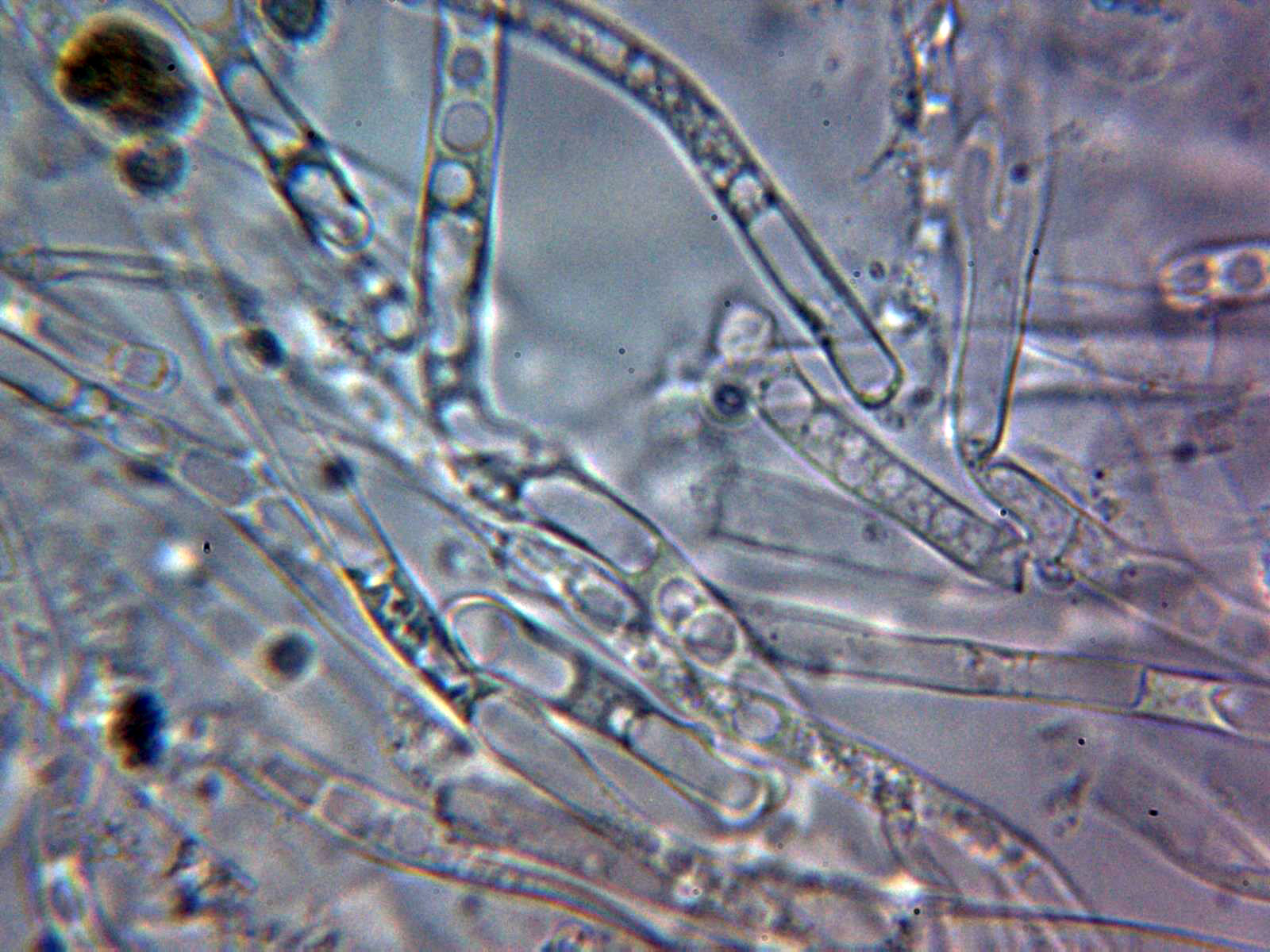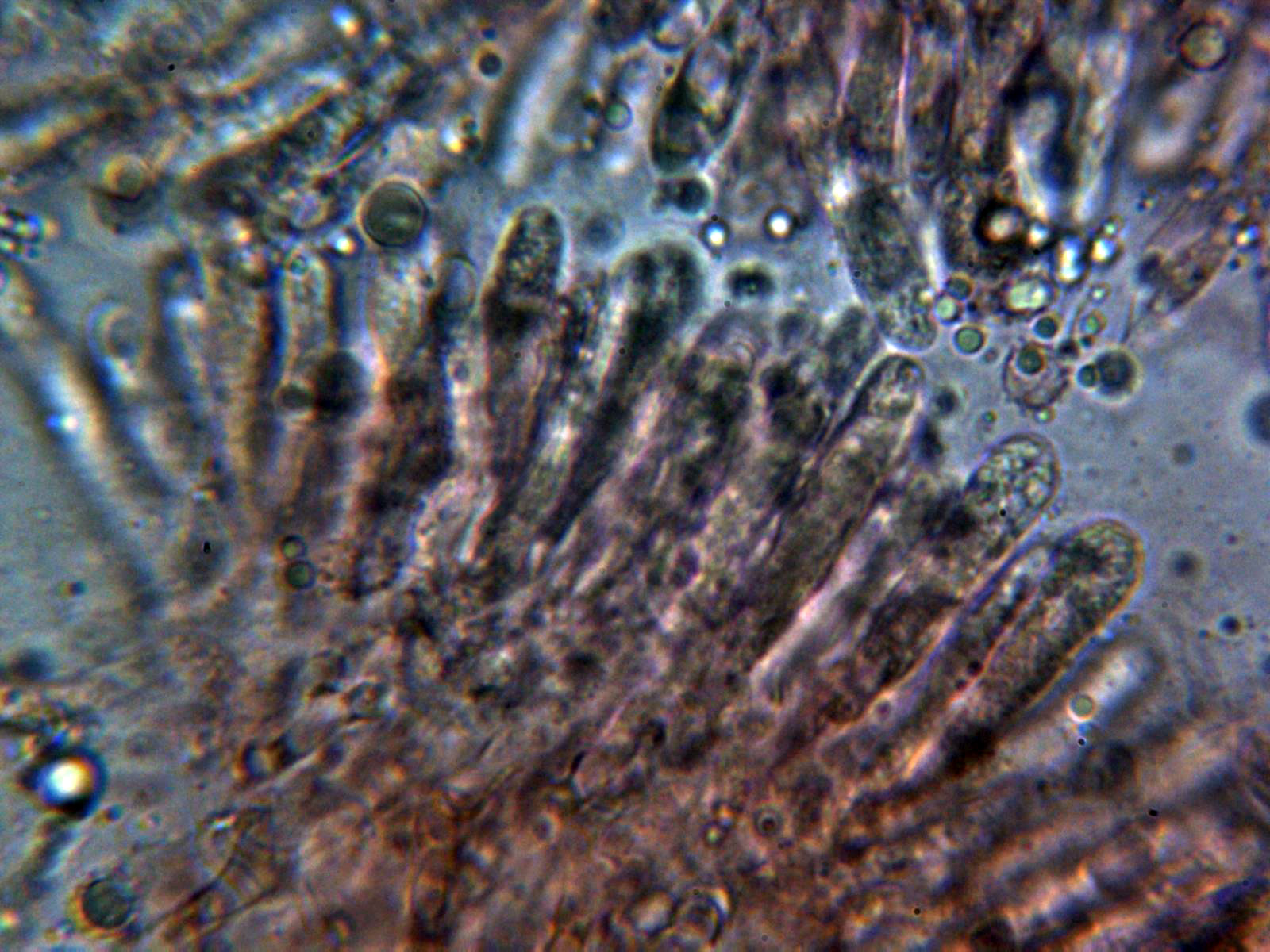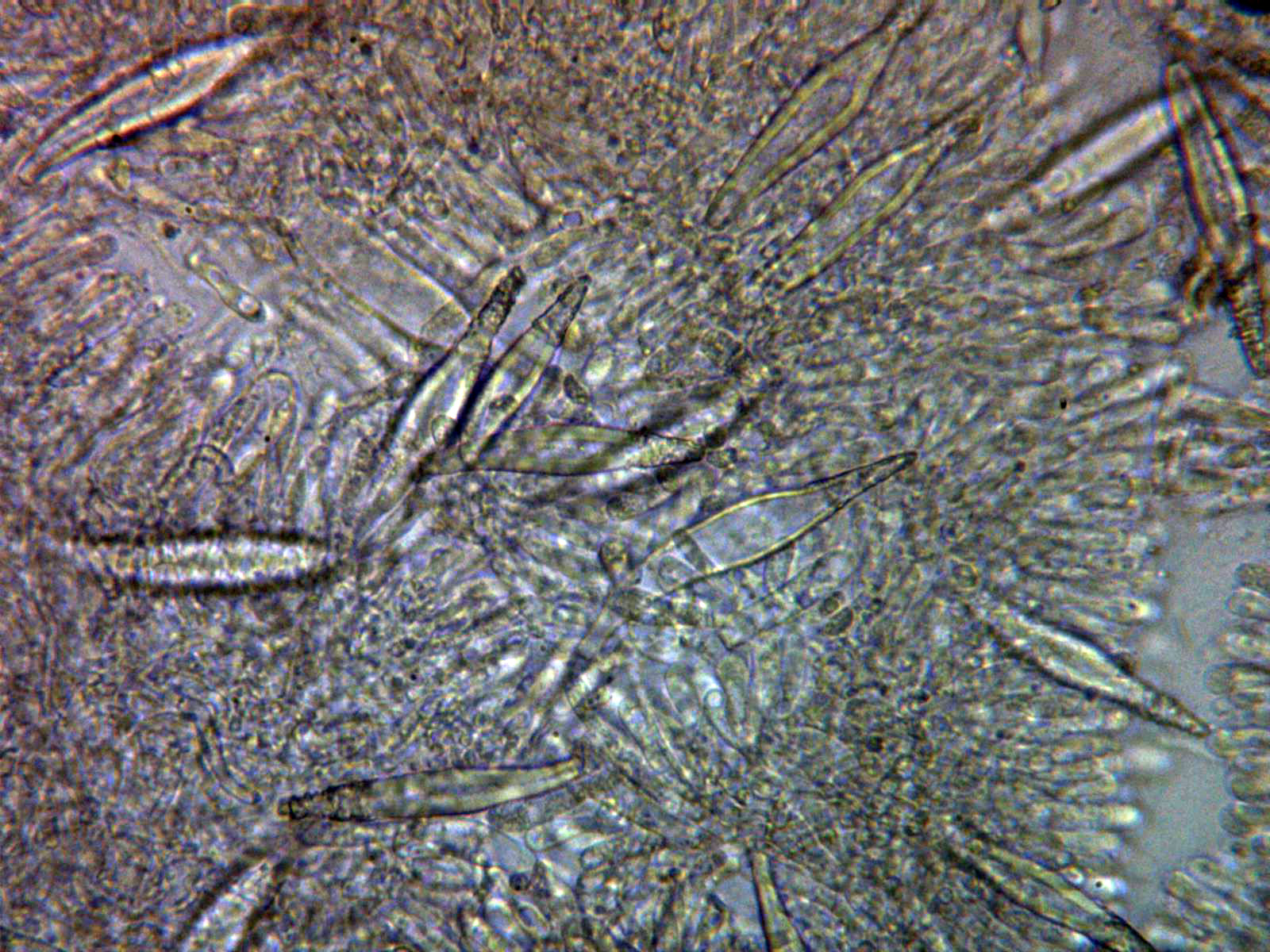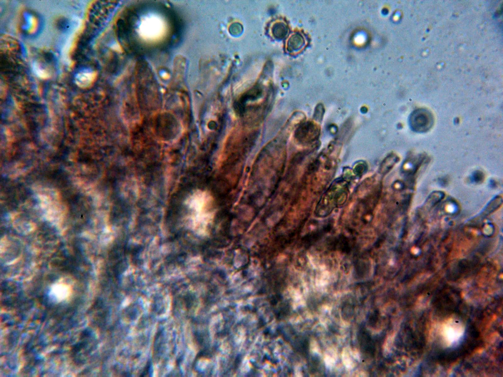 Cistidios metuloides a 400 aumentos: