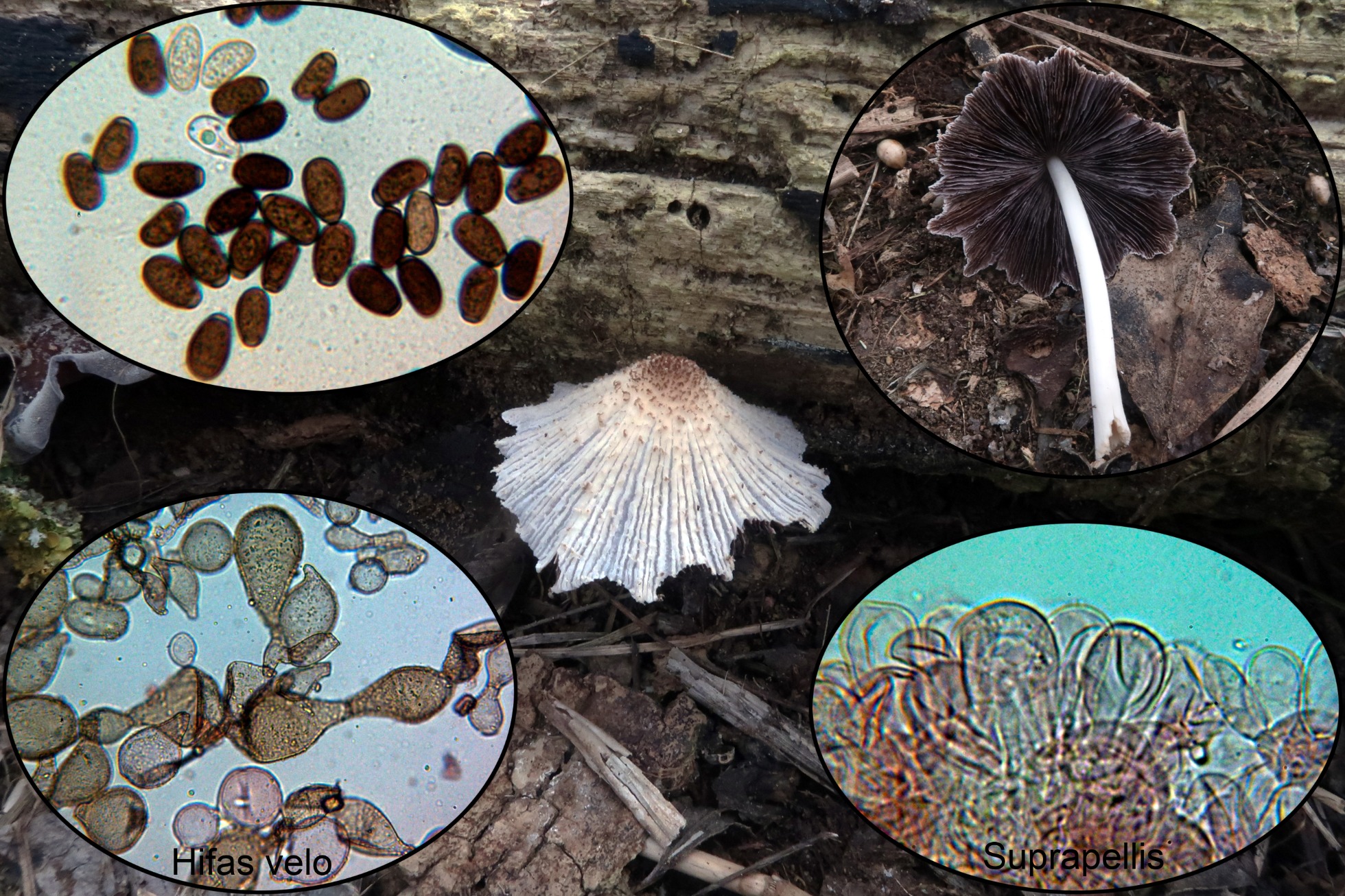 Otro Coprinoide, también habitual bajo chopos, este con una esporada de un color muy claro y láminas no delicuescentes, la Coprinopsis melanthina