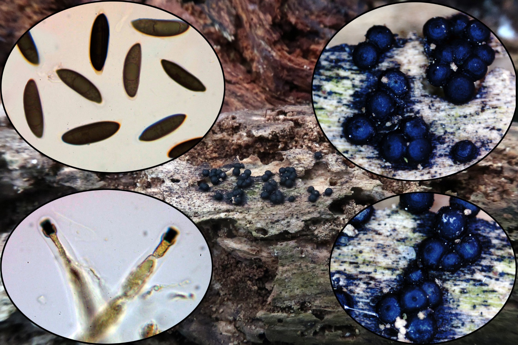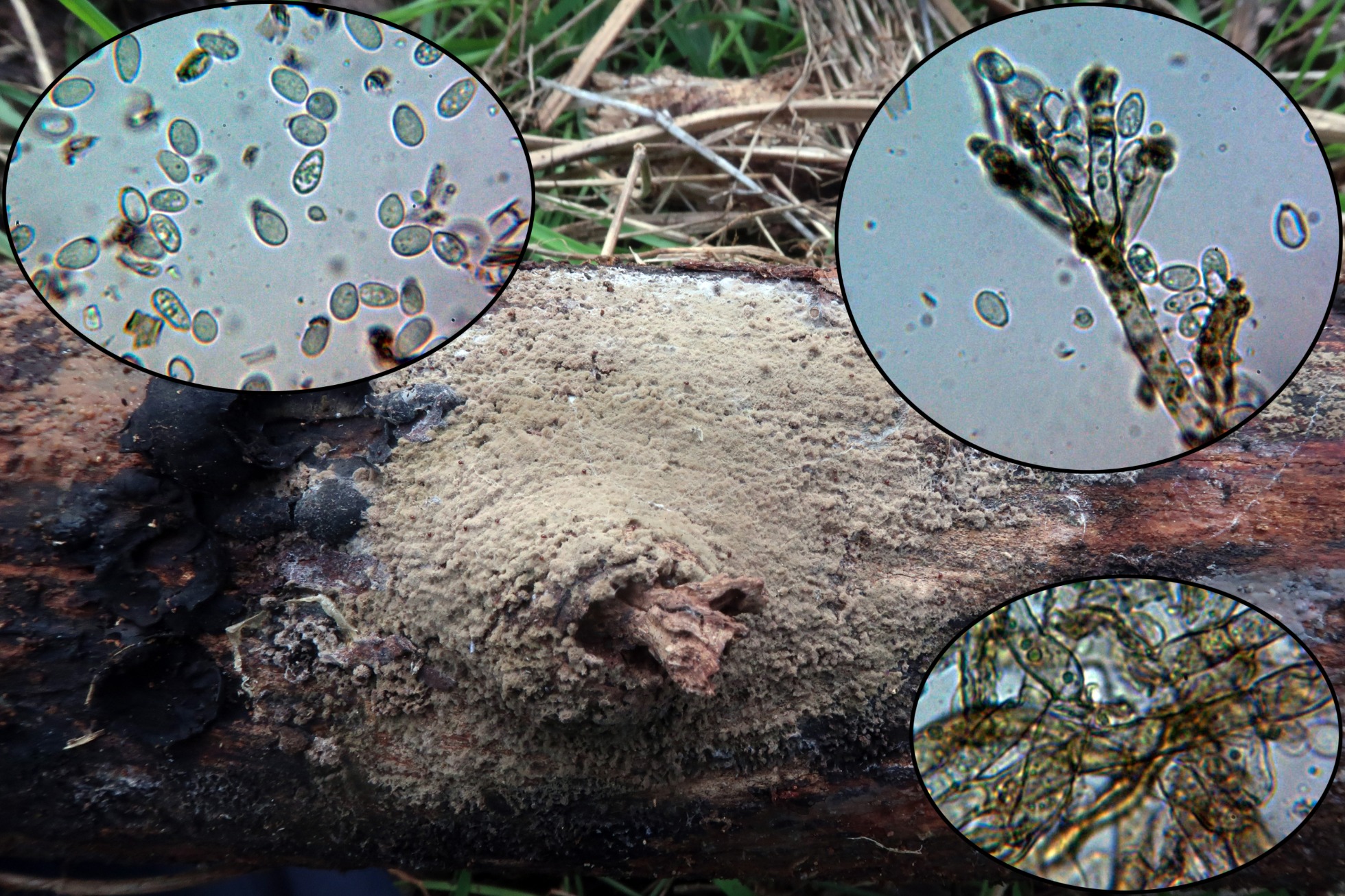 Y para terminar y al lado de unos restos de su forma perfecta, el anamorfo (fase asexual o imperfecta) de la Daldinia concentrica, a esta la presenté no hace mucho, aunque en aquella ocasión tuve que recurrir al análisis molecular, los anamorfos del género Daldinia son unos perfectos desconocidos.